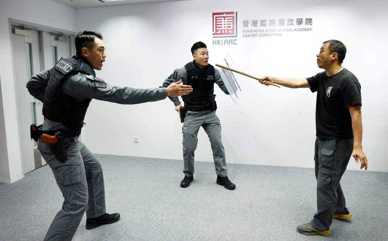 參與者體驗廉署執法人員拘捕行動。 【編輯:洪少葵】