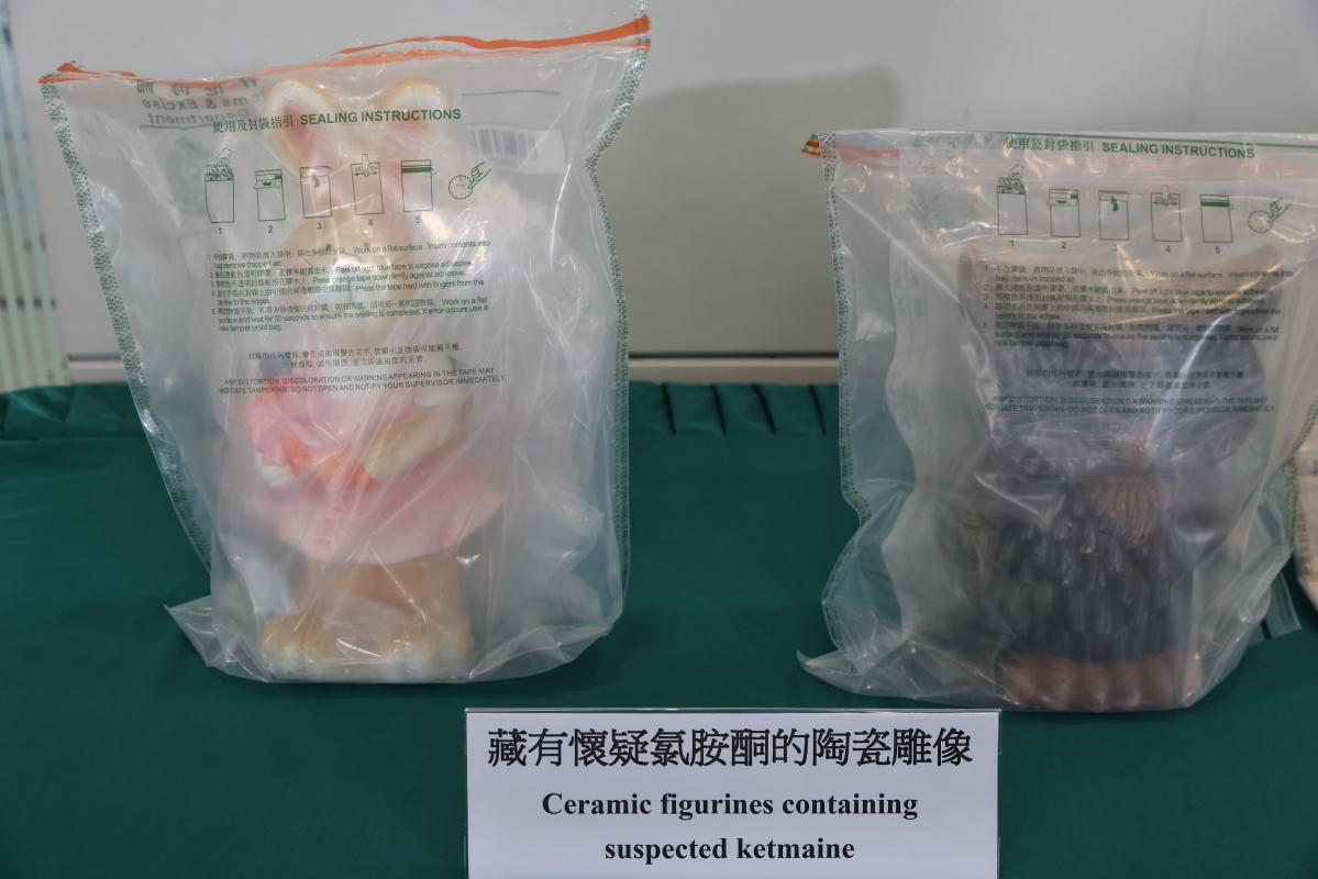 圖為檢獲的藏有懷疑氯胺酮的陶瓷雕像。