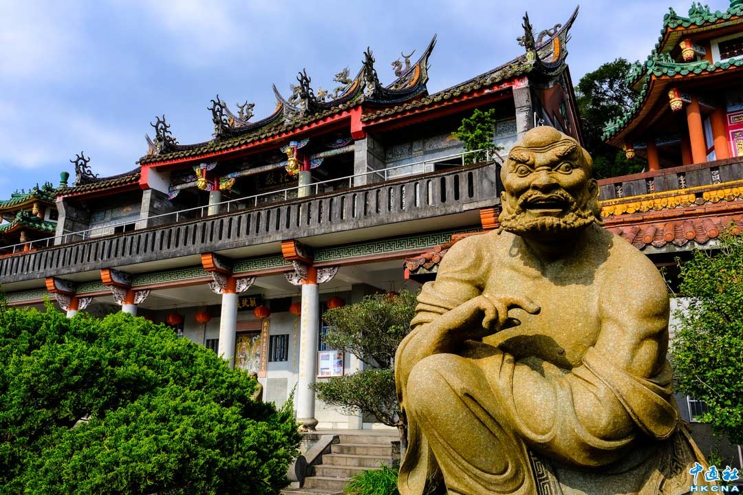 台灣新北市汐止區拱北殿,是著名的百年古剎,建於清光緒27年(西元1901年),俗稱汐止仙公廟,初為一座木造建築,後拆除重建,主祀道教全真派祖師呂純陽真人,也就是八仙當中的“孚佑帝君”呂洞賓。廟宇內環境清幽,沿途山林靜謐草木扶疏,楓樹將山頭染紅之際更是美不勝收,而廟前雙拱橋更是造型優美、古樸雅致,有眾星拱北辰之意。圖為正殿前石雕佛像,法相莊嚴慈祥,建築更展現廟宇之美,散發宗教文化的莊嚴芬圍。 香港中通社圖片