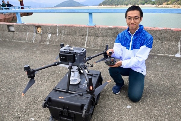 “智鷹勇”無人機(圖源:政府新聞處) 名為“智鷹勇”的無人機配備全球定位系統及衛星導航,準繩度達厘米級,並有熱成像鏡頭。它同時配備採集水樣本系統,可低飛至非常接近水面,放下採樣器後收集一升水,再帶返實驗室分析。 水務署機械工程師淩統說,若該署人員以傳統乘船方式,為整個水塘採集樣本,可能需時逾半個月,改用無人機收集數據,快至一至兩天便可完成。
