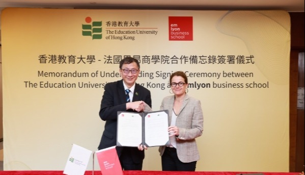 香港新聞網4月10日電 香港教育大學與法國里昂商學院9日簽署合作備忘錄,建立策略性合作夥伴關係,以拓展學術合作、促進師生交流,並共同開發聯合課程。 簽署儀式於教大大埔校園舉行,雙方高層管理人員及代表團出席。此舉標誌著兩校在學術交流與課程發展方面正式開啟新篇章。