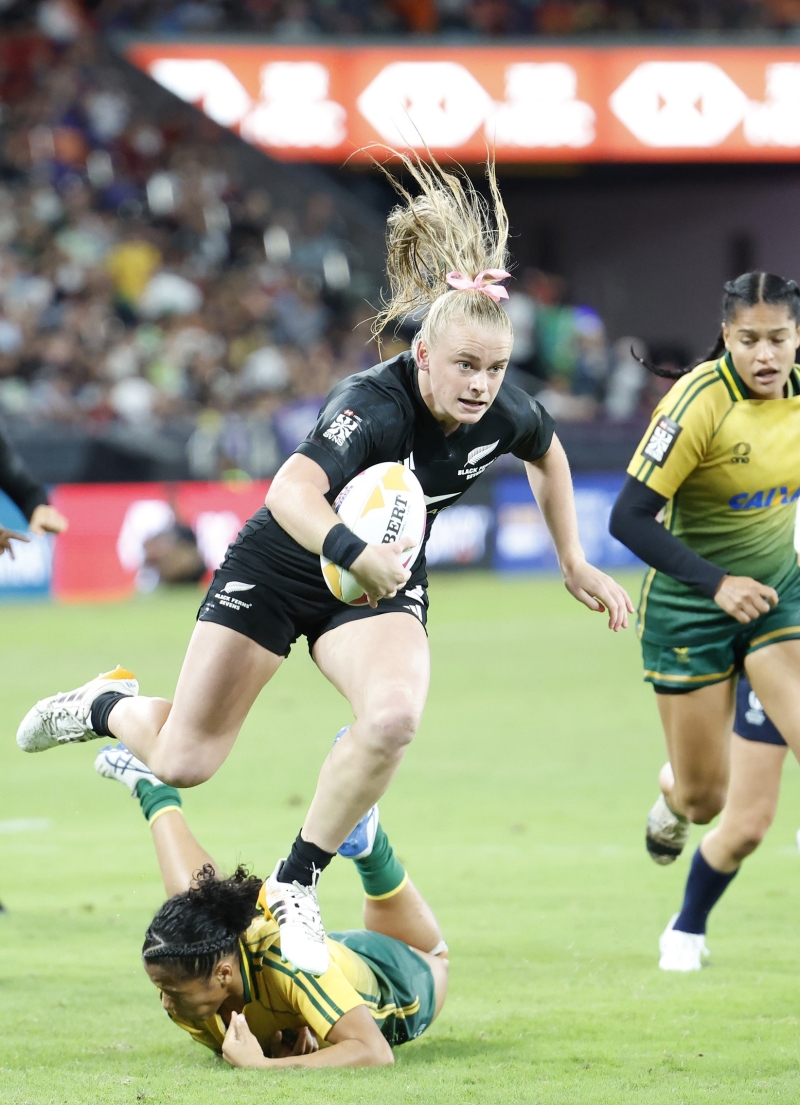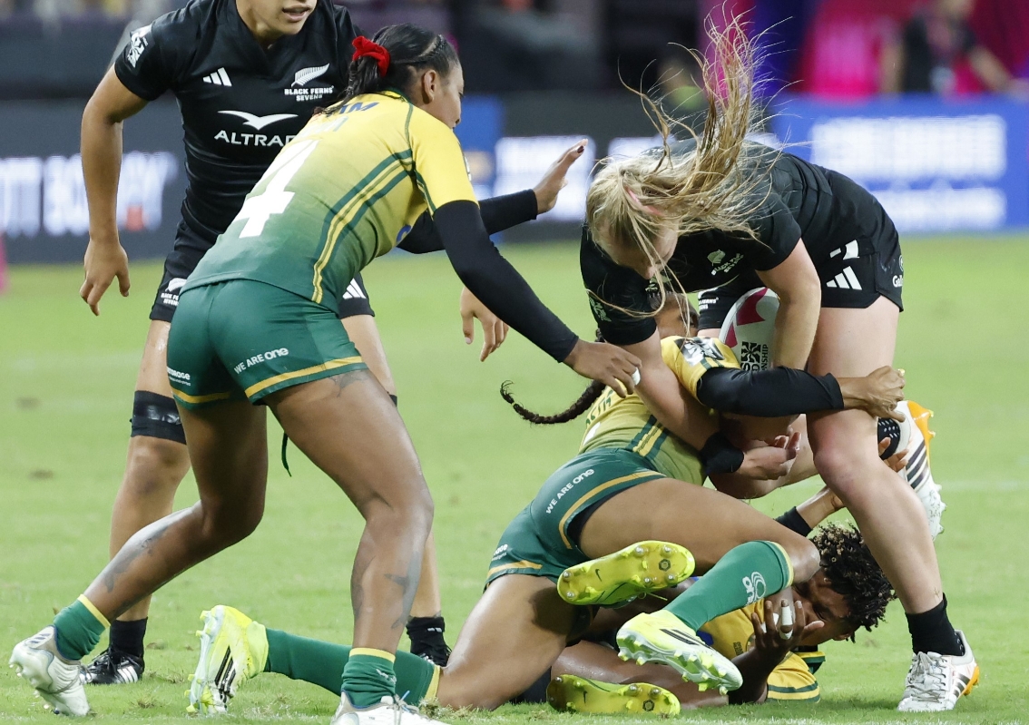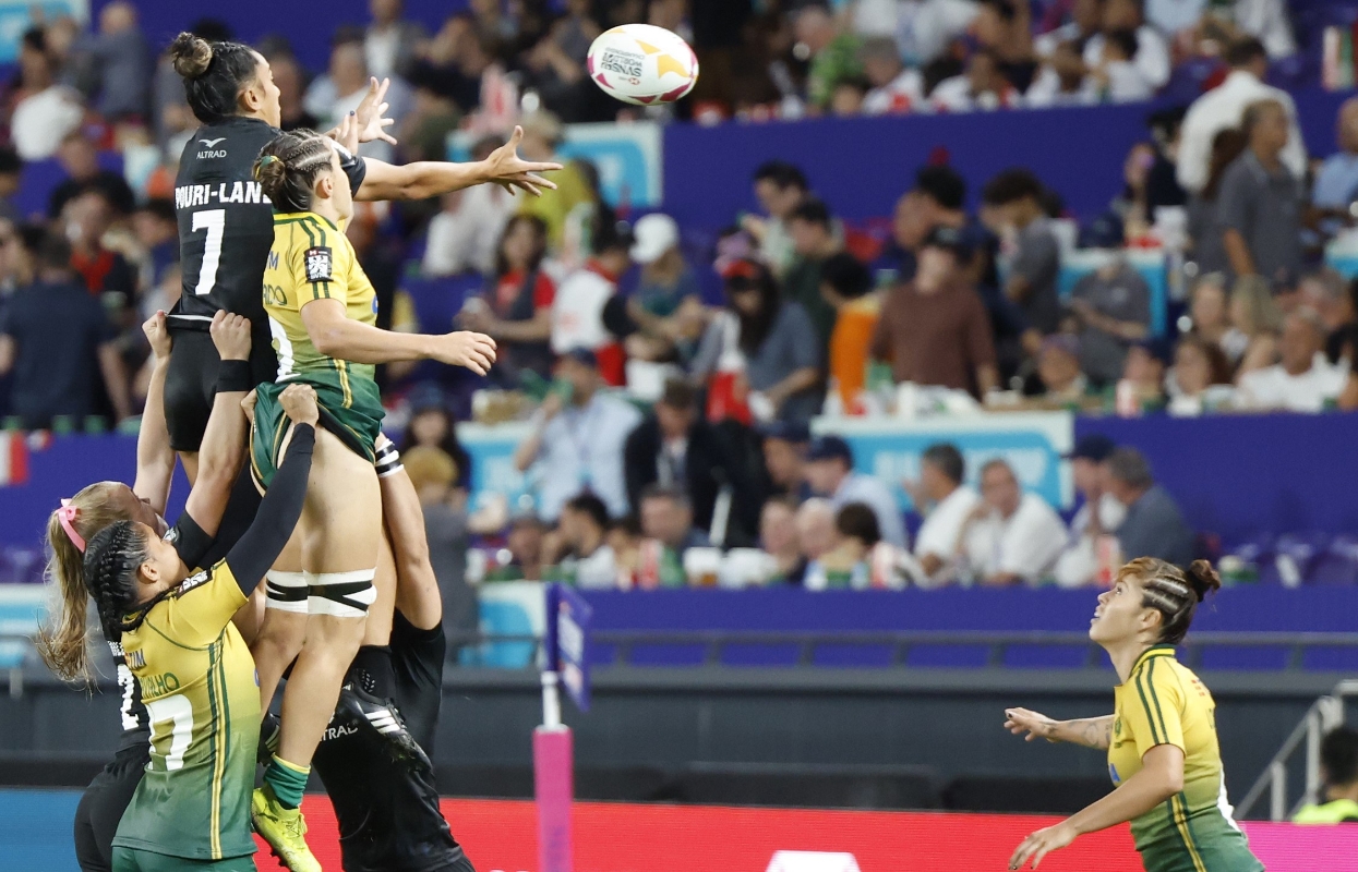 女子組新西蘭隊(黑)對巴西隊比賽。