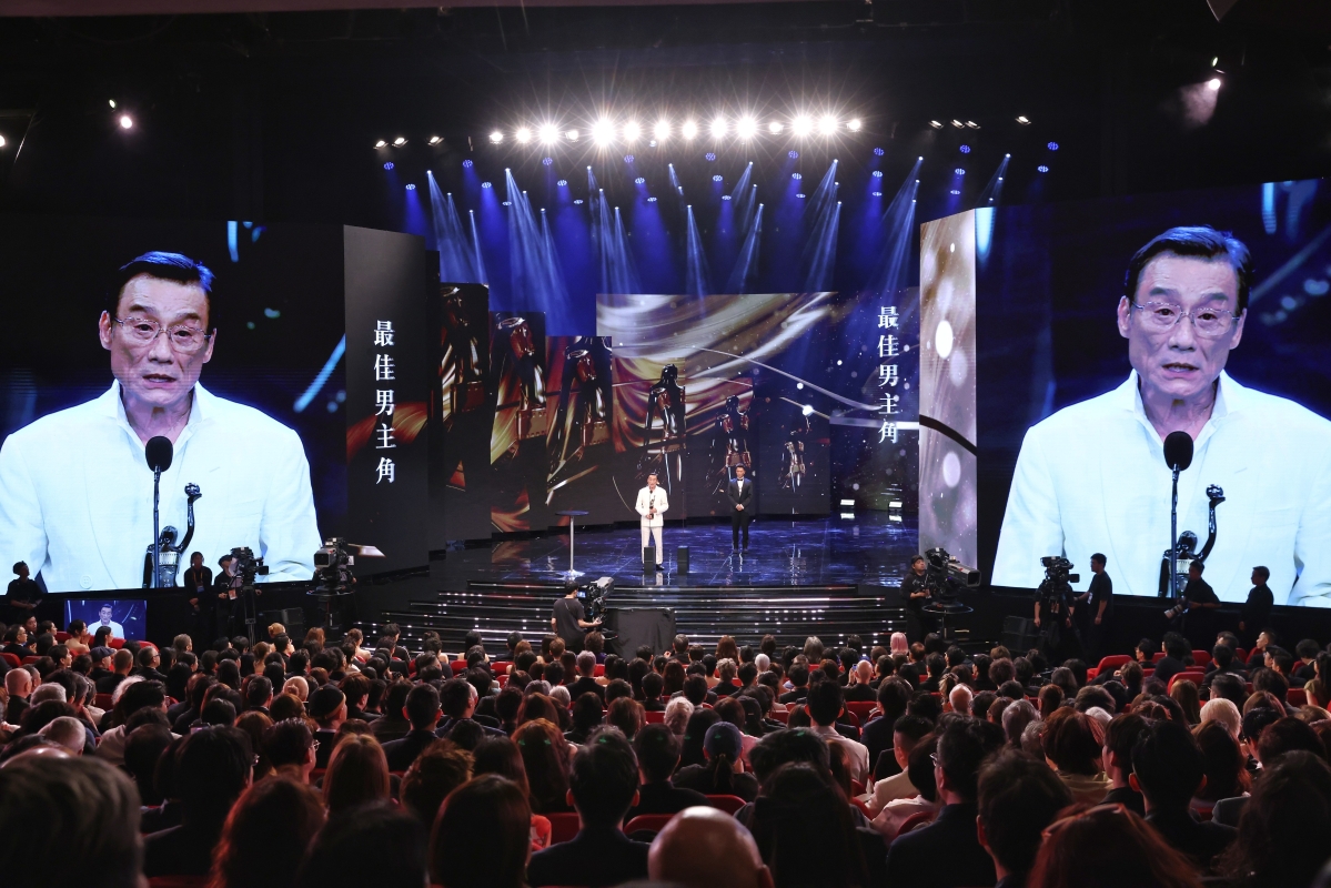 謝霆鋒(右)擔任頒獎嘉賓向梁家輝頒發最佳男主角獎項