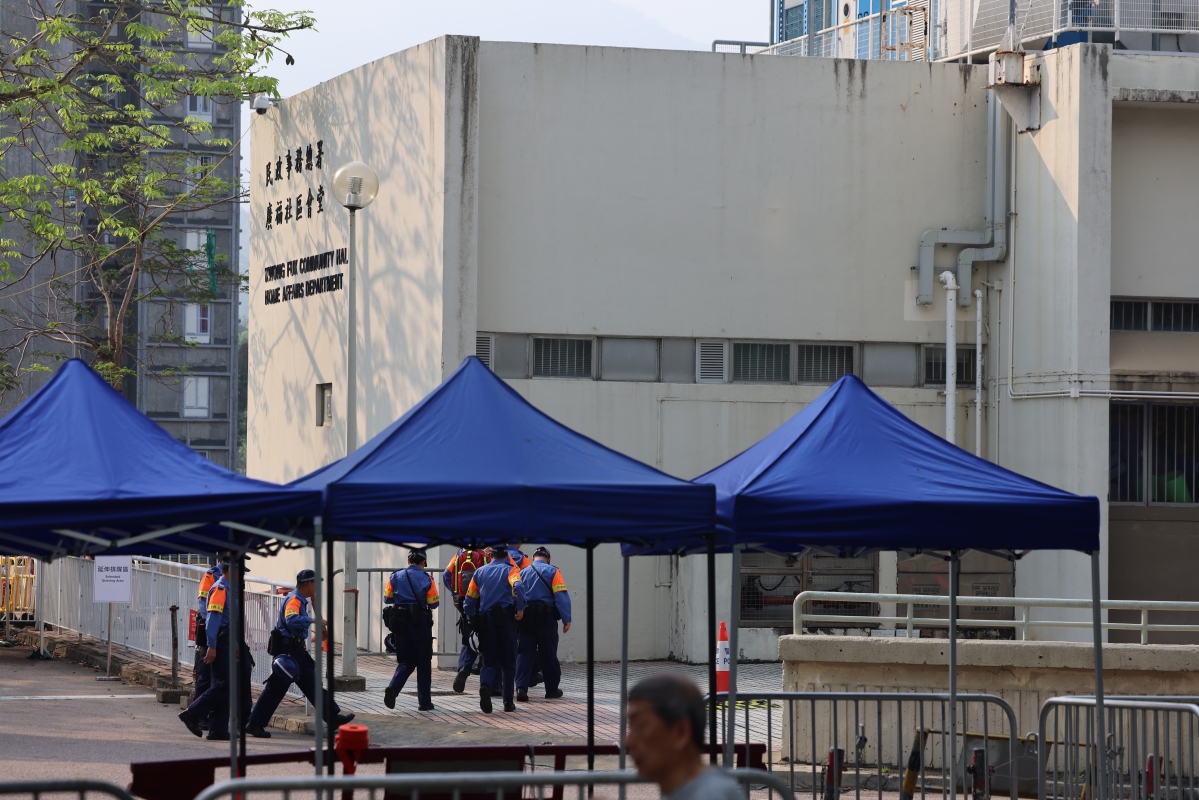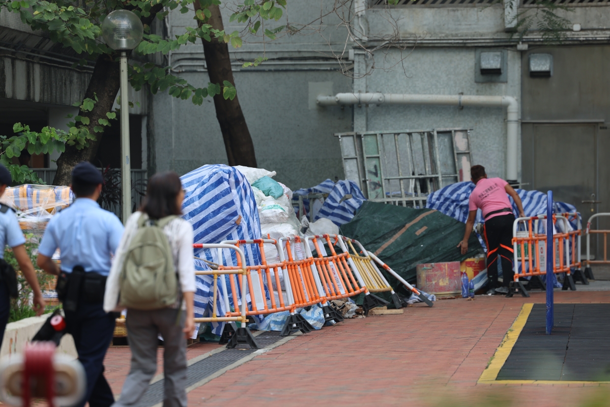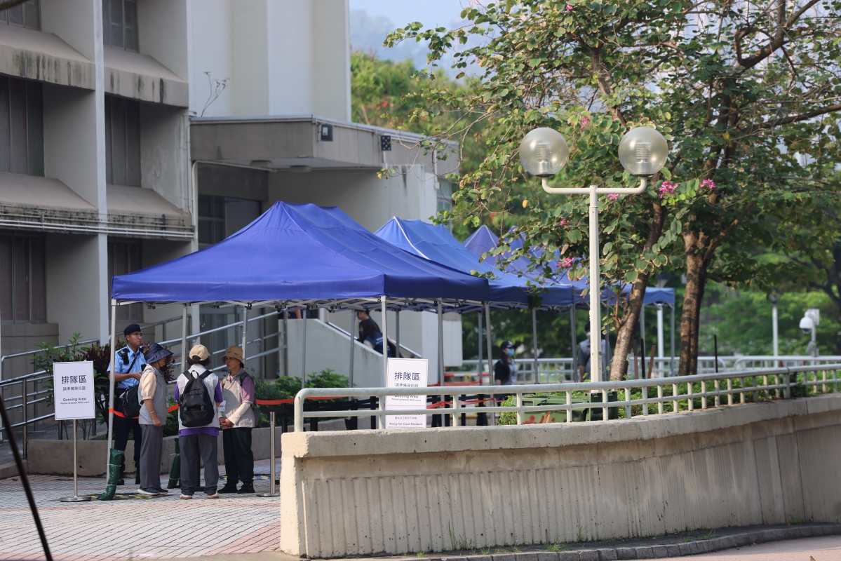 宏福苑對出入區域已搭建帳篷、設置圍欄,為居民排隊輪候做好準備。