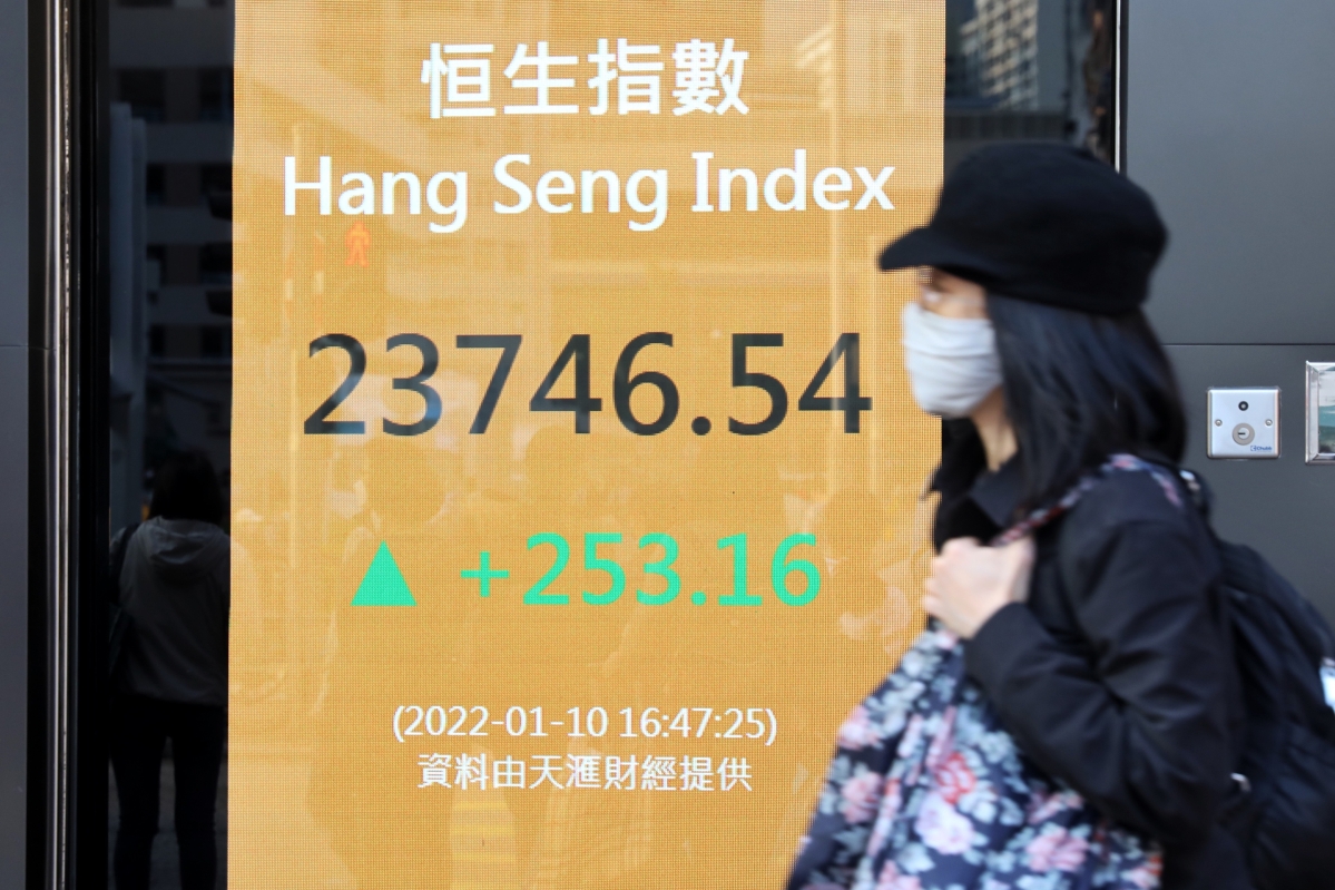 香港中通社1月10日電 香港股市連升三個交易日,恆生指數10日收市升253點或1.08%,報23746點。大市全日成交1387.46億港元。三個交易日累計飆升839點或3.7%。