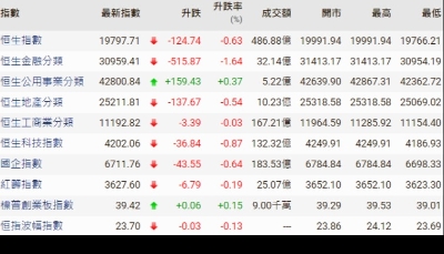 香港新聞網1月21日電 港股創近兩個月新高後倒跌逾200點,截至21日午市休市,恒指半日跌186點或0.75%。