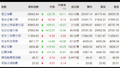 恒指低開89點,開市後跌幅收窄至40點,之後跌幅擴大,暫時見最多跌272點。