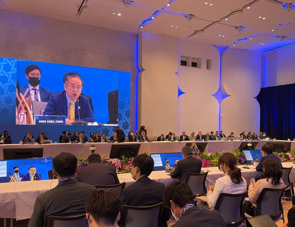 香港新聞網10月20日電 香港特區政府財經事務及庫務局局長許正宇20日在泰國曼谷出席亞太區經濟合作組織(亞太經合組織)財政部長會議(財長會議)。他參加了多個討論環節,主要議題包括全球經濟和金融前景、可持續金融以及跨境支付和匯款。 許正宇說,香港由今年9月26日起撤銷相關檢疫安排後,入境旅客總數有相當升幅,並指出香港的商業活動一直如常。