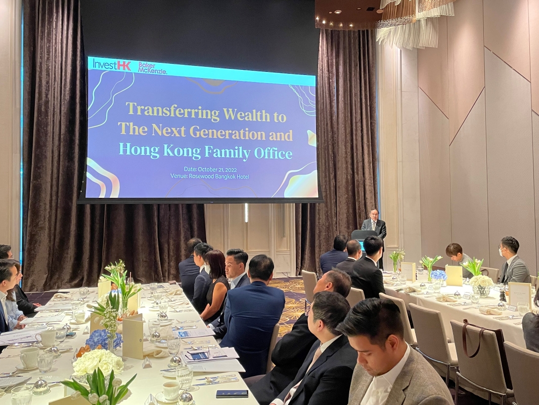 香港新聞網10月21日電 香港特區政府財經事務及庫務局局長許正宇21日繼續訪問泰國。他向當地金融業高層人員和商界闡述香港可提供獨特機遇,尤其是在家族財富管理和金融科技方面。 許正宇出席以轉移財富給下一代與香港家族辦公室為主題的行政人員圓桌午餐會,他致辭時指施政報告的重點之一是鞏固香港作為國際金融中心的地位,並強調,在這些主要舉措中,家族辦公室是資產及財富管理業的重要增長領域,香港將成為泰國的超高資產淨值人士未來財富管理的首選。