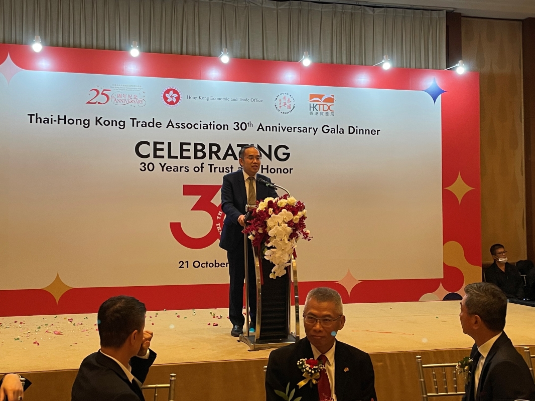 圖片來源:政府新聞網 許正宇說,去年,香港管理相關家族辦公室及私人信託客戶的資產規模超過17000億港元。政府會在今年內提交條例草案,為合資格家族辦公室提供稅務寬免,目標是在2025年年底前推動不少於200間家族辦公室在港設立或擴展業務。 他表示,香港將繼續加強作為最大的離岸人民幣業務中心的優勢,推動市場提供更多以人民幣計價投資工具,以及穩妥高效的匯兌、匯率風險和利率風險管理等財資服務。 就香港金融科技發展蓬勃,許正宇指出,香港有600多家金融科技公司,香港將透過鼓勵更多金融科技服務和產品進行概念驗證測試、推進跨境金融科技項目,以及培育金融科技人才,大力推動金融科技發展。 許正宇在泰國香港總商會三十周年晚宴致辭時表示,香港與泰國的貿易關係密切,泰國是香港重要的貿易夥伴。他說,2021年,泰國是香港商品貿易的第10大貿易夥伴,在東盟國家中排行第四。
