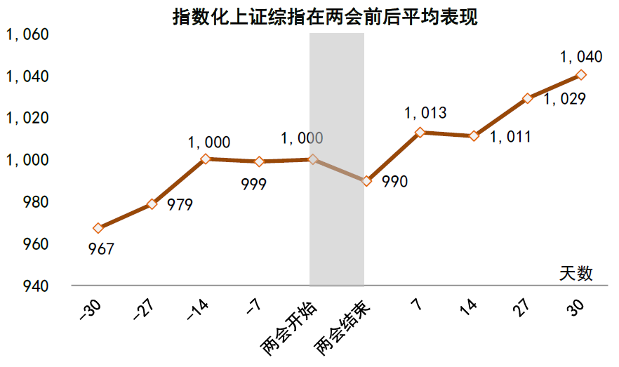 資料來源:發改委,財政部,央行,證監會,銀保監會,住建部,國資委,工信部,中金公司研究部 圖表3:從1995-2022兩會前後市場表現:A股和港股在兩會前後往往有相對不錯的表現,但今年兩會前後市場表現可能相對平穩