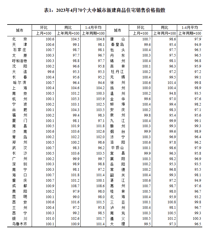 香港新聞網5月17日電 國家統計局剛剛發佈最新數據,4月份70個大中城市中有62城新建商品住宅銷售價格環比上漲。70個大中城市商品住宅銷售價格環比整體漲幅回落、二手住宅環比漲幅回落更為明顯,各線城市商品住宅銷售價格同比上漲或降勢趨緩。具體來看,銀川漲幅1%領跑,北上廣深漲0.6%、漲0.4%、漲0.2%、漲0.3%。 商品住宅銷售價格漲幅回落 4月70個大中城市中,新建商品住宅和二手住宅銷售價格環比上漲城市分別有62個和36個,比上月分別減少2個和21個,二手住宅減少個數較多。新建商品住宅和二手住宅銷售價格同比上漲城市分別有22個和9個,比上月分別增加4個和1個。 從新房看,4月份,一線城市新建商品住宅銷售價格環比上漲0.4%,漲幅比上月略擴0.1個百分點,其中,北京、上海、廣州和深圳環比分別上漲0.6%、0.4%、0.2%和0.3%;二、三線城市新建商品住宅銷售價格環比分別上漲0.4%和0.2%,漲幅比上月分別回落0.2和0.1個百分點。