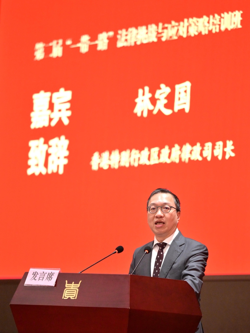 林定國。政府新聞處圖片 林定國說,第一屆的培訓班在2019年舉行,他在今年5月底6月初來京拜訪國資委及商務部的時候建議復辦,馬上得到積極支持,並能在短短兩個月落實第二屆的培訓班,正式開展了國資委、商務部和特區政府律政司在2021年簽署的三方交流合作安排。 林定國指出,今年是國家主席習近平提出“一帶一路”倡議10周年,所以這次活動別具意義。二十大報告列明必須推進國有資本和國有企業做強做優做大,優化民營企業發展環境,促進民營經濟發展壯大,推動共建“一帶一路”高質量發展。但在當今複雜的國際環境下,國企和民企在走出去的過程中,難免面對不少法律挑戰和風險。這些法律挑戰和風險涉及國家安全。《總體國家安全觀學習綱要》提及必須完善共建“一帶一路”安全保障體系,積極應對挑戰,趨利避害,處理好國家利益和“一帶一路”沿線國家利益的關係,要落實風險防控制度,壓緊壓實企業主體責任和主管部門管理責任。 林定國強調,協助國企和民企克服這些法律挑戰和風險,香港責無旁貸。二十大報告支持香港更好融入國家發展大局,為實現中華民族偉大復興更好發揮作用。國家“十四五”規劃明確指示把香港打造成為亞太區國際法律及爭議解決服務中心。香港其中一個獨特優勢,正是建基於普通法制度,在國際上享有崇高聲譽的法律服務,專業水平與誠信兼備、具有國際視野和經驗的法律人才。在7月19日舉行的《國家發展和改革委員會與香港特別行政區政府關於支持香港全面參與和助力“一帶一路”建設的安排》第六次聯席會議上,發改委黨組成員郭蘭峰提出重要意見,其中包括支持香港引導內地企業更好利用香港法律、會計等專業服務資源,與香港企業優勢互補,“抱團出海”,共同拓展貢獻國家市場。 林定國表示,香港法律界對這次培訓班高度重視,律政司首次率領達60多人來自香港法律界的代表團來到北京,向國企、民企介紹香港普通法制度的優勢和香港法律服務可以如何支持內地企業“走出去”,分析就“一帶一路”建設帶來的機遇所需要面對的各種法律合規風險挑戰和應對,並透過國內企業的業務實例分享善用香港專業服務的經驗。 今次培訓班反應熱烈,有超過150名來自不同央企、國企和民企的代表參與。對此,林定國表示“實在非常鼓舞”,希望大家能在這個培訓班盡情交流,提出問題與難點,共同探索解決方案,把握未來發展先機,也希望藉此讓內地企業與香港法律界建立良好溝通渠道,此後保持緊密聯繫。(完) 【編輯:王瑶】
