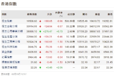 國企指數收市報6094點,跌1.06點。恆生科技指數報3789.3點,跌46.75點或1.22%。(完)