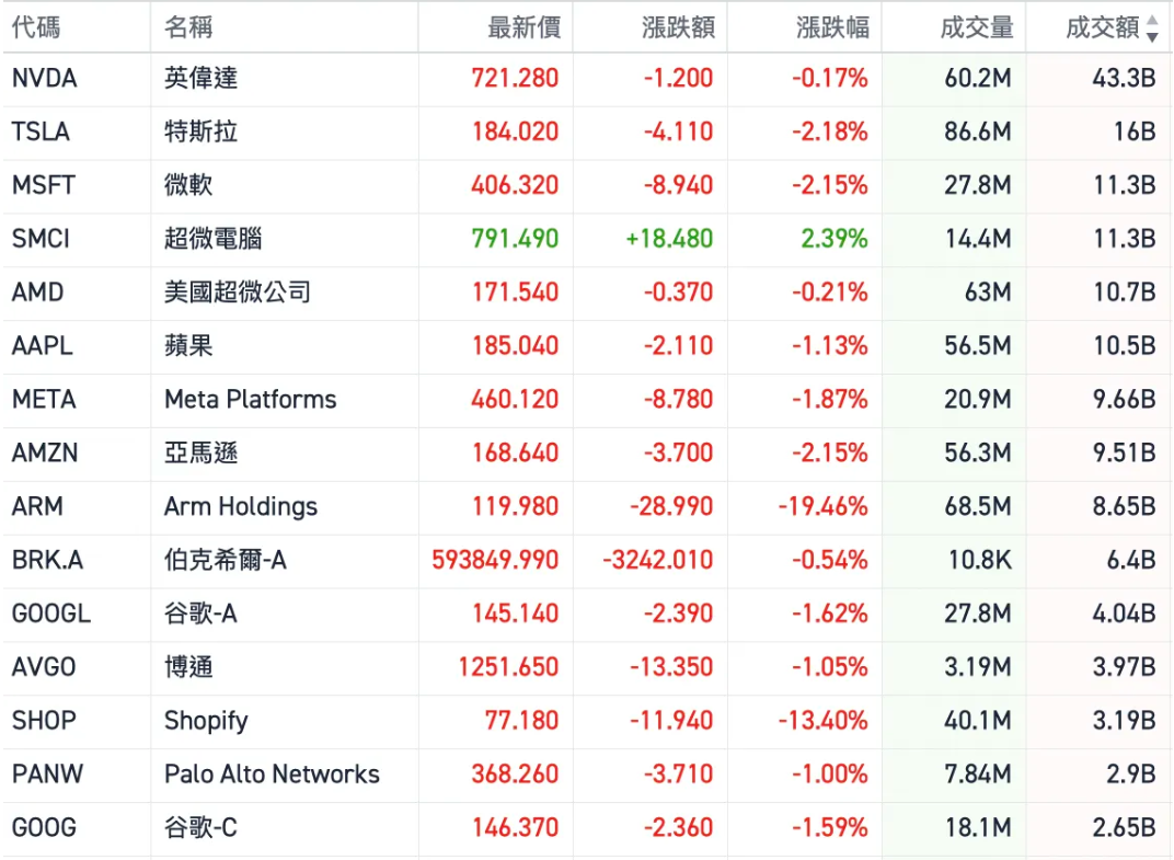 2月13日美股成交額 該芯片製造商將在本月晚些時候公佈財報。過去12個月,分析師平均將公司2024年的收入預期上調了超過100%。 英偉達公司在AI芯片領域處於壟斷地位,而市場看好英偉達芯片將長期處於緊俏狀態。瑞銀和瑞穗近日跟隨同行步伐,上調了英偉達的目標股價。在此之前,摩根士丹利、高盛以及美國銀行均表示看好英偉達股價未來走勢。 本周,瑞銀將英偉達目標股價從580美元上調至850美元,并上調了每股收益預期。瑞穗將英偉達目標股價從625美元上調至825美元。 瑞穗分析師Vijay Rakesh在一份客戶報告中寫道,英偉達是最好的AI股,市場對該公司H100的需要將繼續超過供應。H100被視為訓練大語言模型最需要的GPU。 而當日$亞馬遜 (AMZN.US)$收跌2.15%,成交95.1億美元。截止周二收盤,亞馬遜公司的市值為17517.28億美元,正式被英偉達超過。 (完) 【編輯:錢林霞】