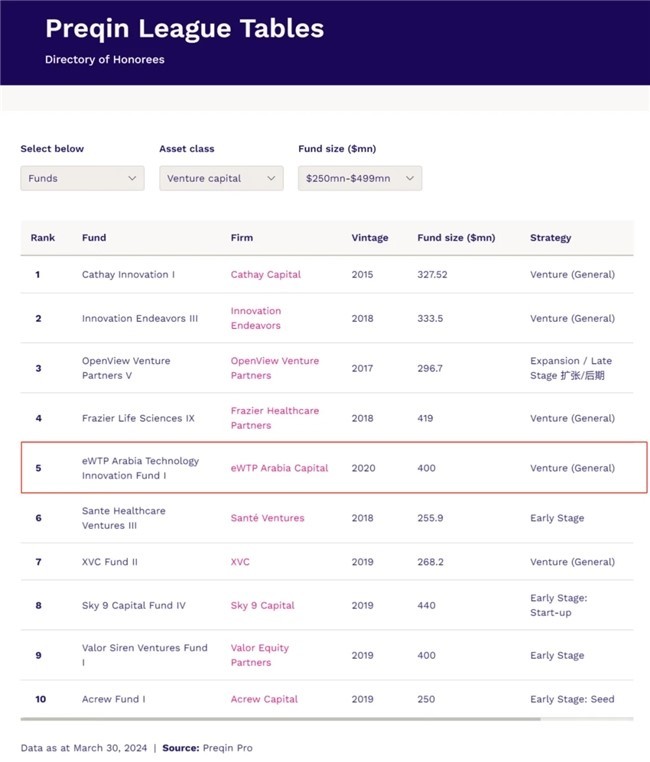 Preqin是全球知名的權威另類資產行業數據、市場分析和情報平台,提供了全球規模最大的精選私募資本市場基準數據庫,其“表現最佳的風險投資基金榜單”基於Preqin行業領先的私募市場數據平台數據製作,在提供業績頂尖基金的客觀排名的同時,也反映出業內對投資公司及相關領域的高度認可及關注。 易達資本一期基金作為新興市場沙特的新基金產品,用財務表現在全球排行榜中贏得了一席之地。“這證明我們的投資策略是正確的,也是對我們團隊投資能力的認可”,易達資本創始及管理合夥人Jessica Wong表示,“沙特是一個方興未艾的風險投資目標市場,為全球投資者帶來前所未有的機會,潛力巨大,我們對這個市場的未來充滿信心。”