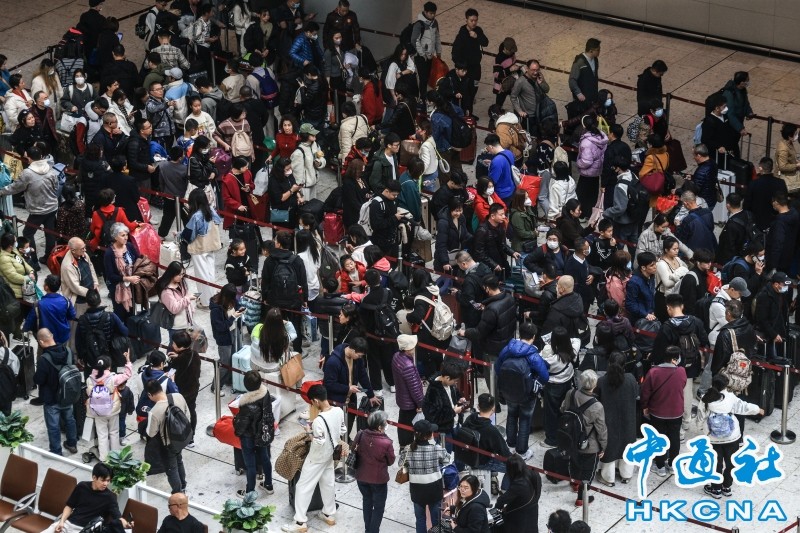 香港中通社資料圖片 統計數據顯示,自春運啟動至1月24日,內地往返香港的跨境客流累計達到100.2萬人次,日均客流量高達9.1萬人次。在這其中,香港與廣東各地市的客流往來尤為頻繁,佔比高達66.1%。主要出行方向集中在香港與深圳、廣州、潮汕等地市。特別是在週末時段,跨境高鐵成為了眾多旅客旅遊觀光、探親訪友的重要選擇,為粵港澳大灣區的旅遊業發展注入了新的活力與動能。