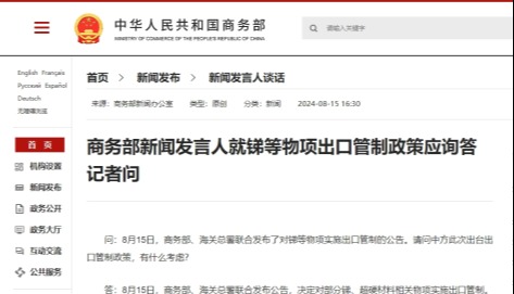 中國商務部、海關總署聯合發布的公告指,根據相關法例規定,為維護國家安全和利益、履行防擴散等國際義務,經中國國務院批准,即日起對仲鎢酸銨等25種稀有金屬產品及其技術實施出口管制。 出口經營者出口上述物項應當依照《中華人民共和國出口管制法》、《中華人民共和國兩用物項出口管制條例》的相關規定向國務院商務主管部門申請許可。 另據中國商務部新聞發言人透過官網表示,對鎢等相關物項實施出口管制是國際通行做法。中國作為全球主要的鎢等相關物項生產國和出口國,長期履行防擴散等國際義務。此次增列相關物項,體現了統籌發展和安全的管制理念,有利於更好維護國家安全和利益,更好履行防擴散等國際義務,保障全球產業鏈供應鏈安全穩定。出口符合相關規定的,將予以許可。 發言人並表示,此前中方已經向有關國家和地區作了通報。(完) |