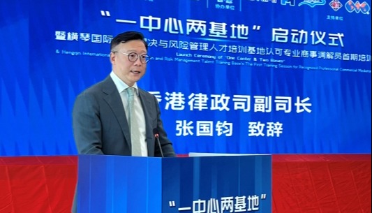 圖為律政司副司長張國鈞在培訓課程開班儀式上致辭。圖源:政府新聞處 香港特區政府律政司副司長張國鈞致辭時強調,推動大灣區法治建設需三地法律部門人員深入了解三個法域的優勢,透過增進理解促進協作,共同發展,而這亦是粵港澳三地法律部門聯席會議的共識。 他指,聯席會議的機制成立以來,一直積極推動三地深化法律交流和實務合作,成果纍纍。此課程亦是聯席會議機制下的重點培訓項目,由三地輪流舉辦。首兩屆於2023年和去年分別在澳門和廣州舉行,今年第三屆首次在港舉行。 他介紹,為期三天的在港課程由香港國際法律人才培訓學院籌辦。期間,為讓學員親身了解香港法制的實踐,課程將涵蓋豐富參訪活動,包括參訪立法和執法機關及仲裁機構,並到法院旁聽。課程亦將覆蓋香港普通法制度的要點和獨特優勢、香港特區政府行政、立法、司法體制、法律草擬與制訂過程等核心議題,以及安排專題實務分享,將特設家事調解專題及實務分享環節。 張國鈞表示,香港國際法律人才培訓學院將繼續善用香港中英雙語普通法制度和國際化格局,為包括大灣區的法律界人士提供能力建設、知識和經驗分享的平台,貢獻國家涉外法治建設。(完) 【編輯:彭玉婷】