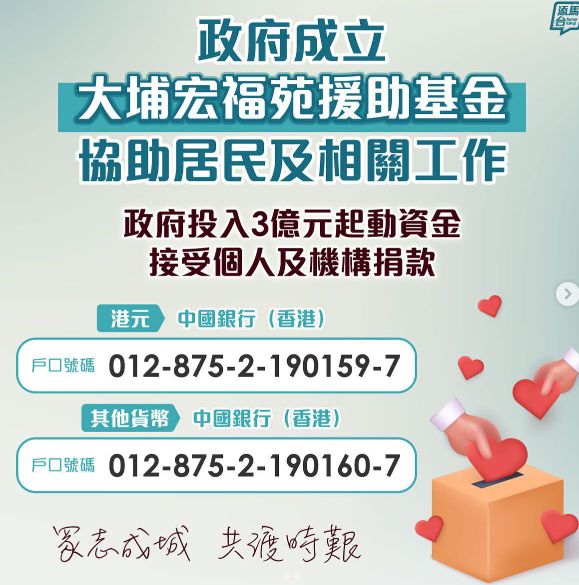 大埔火災援助基金已收到捐款20億元 總額達23億元分享到: