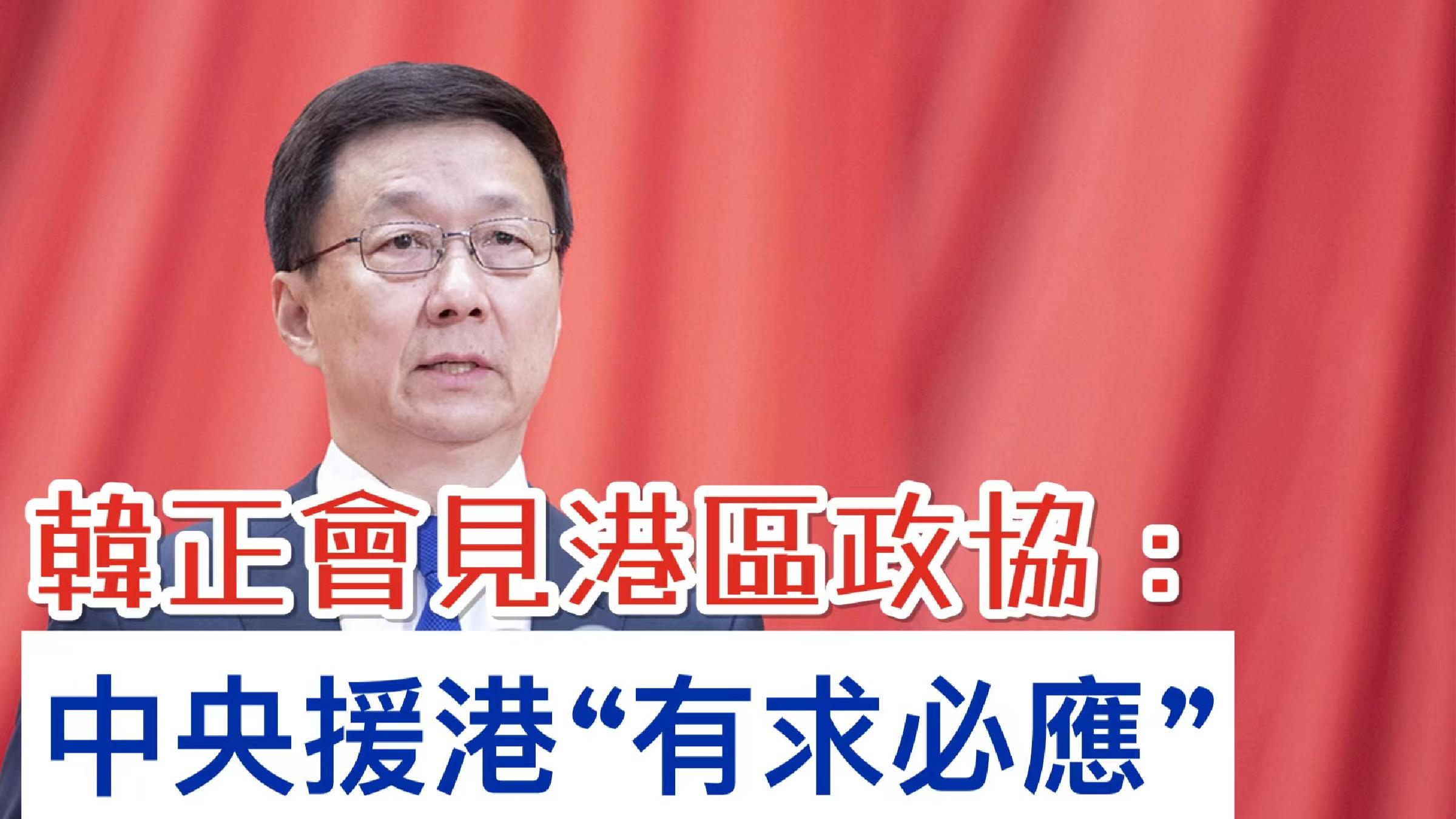 【字幕】3月7日,中國國務院副總理韓正在北京會見港區全國人大代表。港區全國人大代表陳勇引述韓正強調,中央堅決大力支持香港抗疫,強調要集中力量,把香港抗疫工作視為頭等大事,中央定必有求必應,只要特區政府要求,中央會照單全收、全力以赴支援,包括人力、物力、財力。