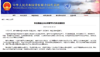 聯合國將春節確定為聯合國假日 中國外交部回應分享到: