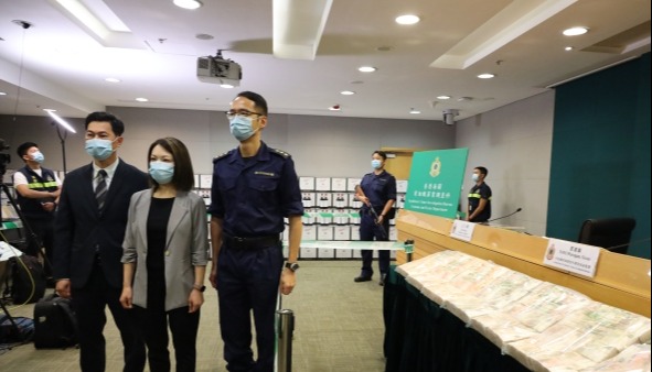 【字幕】6月26日,香港海關在總部大樓舉行記者會,公佈香港海關與澳門海關今年6月採取聯合執法行動,通過兩地情報交流,重點打擊海上走私活動。行動中合共檢獲市值估計超過1億1千萬元的走私物品,拘捕4名懷疑涉案男子。