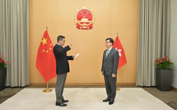 【同期】香港特區第六任行政長官 李家超 本人李家超謹此宣誓,本人就任中華人民共和國香港特別行政區行政長官,定當擁護《中華人民共和國香港特別行政區基本法》,效忠中華人民共和國香港特別行政區,盡忠職守,遵守法律,廉潔奉公,為香港特別行政區服務,對中華人民共和國中央人民政府和香港特別行政區負責。 記者 朱樂怡 香港報道 |