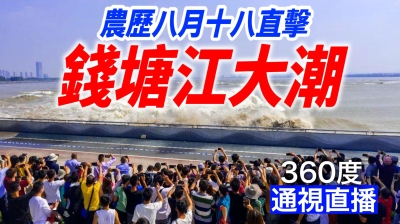 【字幕】中秋前後為錢塘江潮觀最佳潮時節,農曆八月十八日,更是中國錢塘江年度大潮的日子。“八月十八潮,壯觀天下無。” 每年皆有數以百萬計的遊客紛至沓來,在錢塘江多個觀潮佳點觀賞氣勢磅礴的錢塘江大潮。據悉,大潮來臨時,潮水速度會達到每秒 10 米,錢塘江湧潮代表倉前站(蕭山觀潮城)最大達到 1.4 米左右,場面十分壯觀。由於今年受到颱風梅花的風雨影響,颱風北側的偏東風可能灌入杭州灣,助推大潮,當地政府也提醒觀潮民眾,遠離岸邊、注意安全。