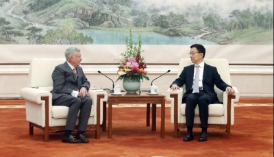 【字幕】3月27日、29日,國家副主席韓正在京分別會見了來華出席中國發展高層論壇2023年年會的滙豐集團行政總裁祈耀年、太古集團行政總裁施銘倫、雅培公司董事長羅賦德、安聯集團董事會主席貝特、施耐德電氣公司董事會主席趙國華。