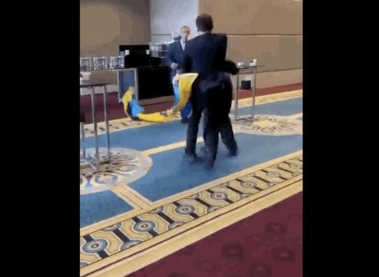 【字幕】隨後,俄羅斯代表團成員提莫菲夫接受採訪時,烏克蘭議員馬里科夫斯基展開了一面烏克蘭國旗。另一名俄羅斯代表團成員斯塔維茨基隨即從馬里科夫斯基手中奪過這面烏克蘭國旗。視頻顯示,俄烏代表團成員發生了肢體衝突,扭打在了一起。 【字幕】俄羅斯代表的臉部和頭部受到數次打擊。有報道稱,斯塔維茨基後被送往醫院進行檢查。 【字幕】這幾乎是俄烏關係劍拔弩張的現實寫照。當地時間3號,克里姆林宮遭無人機襲擊,俄烏開啟了又一輪隔空較量。 記者 付鈺香港報道 |