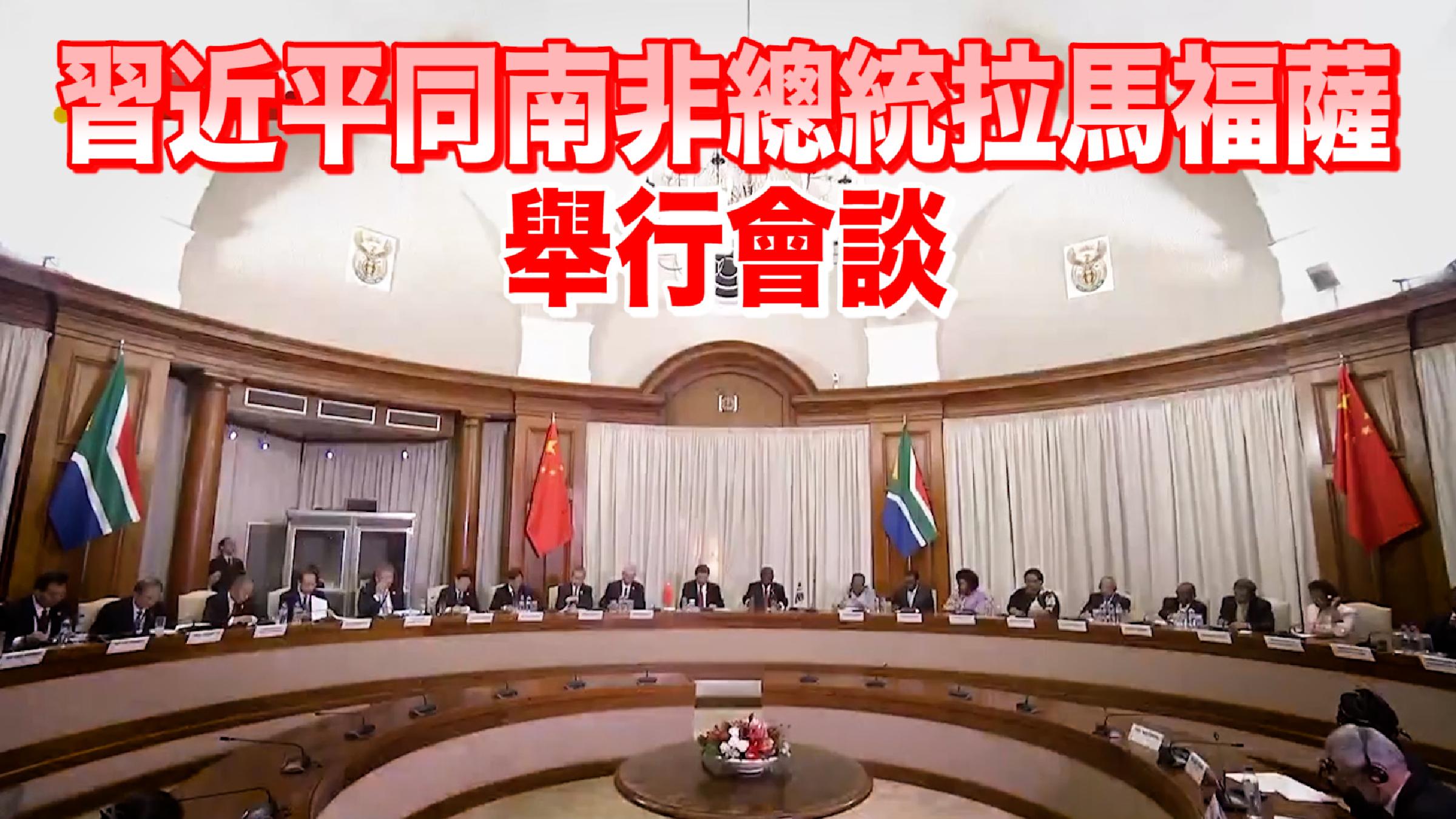 【字幕】當地時間8月21日晚,國家主席習近平抵達約翰內斯堡,出席金磚國家領導人第十五次會晤並對南非進行國事訪問。南非總統拉馬福薩率外長潘多爾,陪同部長、總統府婦女、青年部長祖馬等政府高級官員在舷梯旁熱情迎接。南非婦女向習近平獻上鮮花,禮兵持槍致敬。身著民族服裝的民眾跳起奔放的舞蹈。
