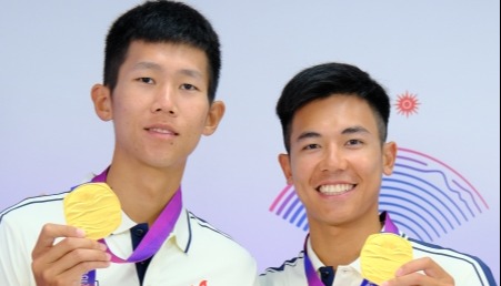 【字幕】9月24日,杭州第19屆亞運會上,中國香港代表團賽艇運動員林新棟和王瑋駿在男子雙人單槳無舵艇項目中奪得一面金牌。在頒獎儀式上,兩位運動員淚灑現場。