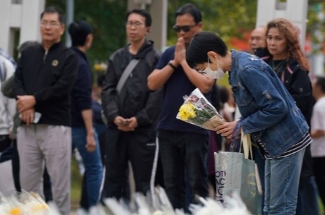 截至今天下午2點鐘,死亡人數為159名。 【字幕】香港大埔宏福苑五級火造成至少159人死亡,12月2日和3日是大部分遇難者的“頭七” ,不少遇難者家屬在火災現場進行路祭,希望能夠超度宏福苑遇難者及離世動物。 【字幕】2日下午二時,約二十位佛教法師到場,現場設置祭壇,擺放了白色鮮花等祭品,法師一邊念經,一邊敲打木魚;下午三點半,香港道教聯合會團體人士在現場由喃嘸師傅帶領為逝者誦經超度。 【字幕】基督教會亦有到現場,為火災遇難群眾祈福。逝者家屬著黑衣默哀,在宏福苑附近休憩庭,大批市民排隊到場獻花,涼亭內貼滿悼念紙條,有人摺千紙鶴哀悼逝者,現場氣氛肅穆,不時有人低聲啜泣 。 記者 付鈺 朱樂怡香港報道 |