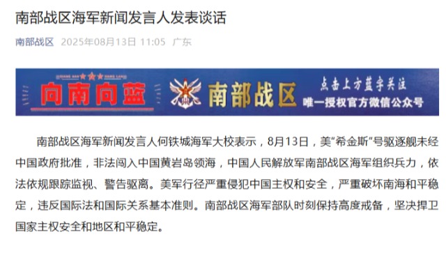 中國黃岩島 圖源:新華社 中國人民解放軍南部戰區海軍新聞發言人何鐵城海軍大校表示,8月13日,美“希金斯”號驅逐艦未經中國政府批准,非法闖入中國黃岩島領海,中國人民解放軍南部戰區海軍組織兵力,依法依規跟蹤監視、警告驅離。 何鐵城指出,美軍行徑嚴重侵犯中國主權和安全,嚴重破壞南海和平穩定,違反國際法和國際關係基本準則。南部戰區海軍部隊時刻保持高度戒備,堅決捍衛國家主權安全和地區和平穩定。 對於“希金斯”號非法闖島的意圖,南京大學中國南海研究協同創新中心高級研究員、浙江工業大學區域國別研究院執行院長成漢平13日對香港中通社表示,“希金斯”號驅逐艦隸屬美軍現役主力的伯克級驅逐艦,排水量達9000多噸,裝備先進的宙斯盾系統和96單元的MK 41垂直發射系統,整體作戰實力在美軍名列前茅。“希金斯”號非法闖入黃岩島,是對中國赤裸裸的軍事挑釁,已形成海上挑戰,因此可以看到中方毫不客氣,霸氣出手驅逐。 成漢平分析,中美暫停雙方關稅90天,留出下一步談判空間,此時美方派軍艦強闖黃岩島,是有意識向中方展示美方還有多少牌可以打出,試圖逼中方在關稅方面做出一定讓步。“美國潛台詞很清楚,今日打‘南海牌’,明日就可能打‘台灣牌’。特朗普團隊一定在認真思考,怎樣才能讓中方讓步。但美方手中其實沒有太多牌,千方百計找補,台灣牌將是其最關鍵、也是最後一張牌。” 美“希金斯”號非法闖島之前,菲律賓方面挑釁動作不斷。8月11日,菲方組織多艘海警船、公務船侵闖,以給漁船運補為幌子,不顧勸告執意侵闖黃岩島。8月6日,菲總統馬科斯涉台言論玩火,稱若台海爆發衝突,菲律賓無法置身事外。8月4日,菲律賓與印度在南海展開聯合軍演。 成漢平指出,菲中期選舉已證明,馬科斯外交政策不受歡迎,但其仍一意孤行,是想藉在南海的所謂強悍行動,賣力表現,尋求美國對菲關稅下調,并獲取美、日、澳等盟友的軍援裝備和情報支持,提升自身實力。 成漢平續指,美方派“希金斯”號強闖黃岩島的另一目的,是為菲律賓站台撐腰,向菲律賓發出信號,令其繼續對中國進行各種挑釁。特朗普政府并非在配合馬科斯,而是圍繞美國利益拿捏,按自身步驟推進,要求菲方配合。此舉不僅會造成菲方誤判,為未來南海局勢帶來更多不確定性,也會令中美關稅談判面臨新的困境,不利中美關係改善。(完) 【編輯:王豐鈴】
