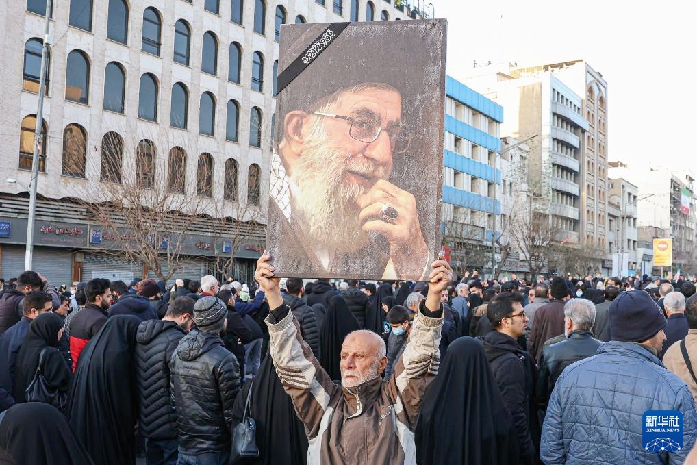 2026年3月1日,民眾在伊朗首都德黑蘭集會,哀悼伊朗最高領袖哈梅內伊。新華社圖