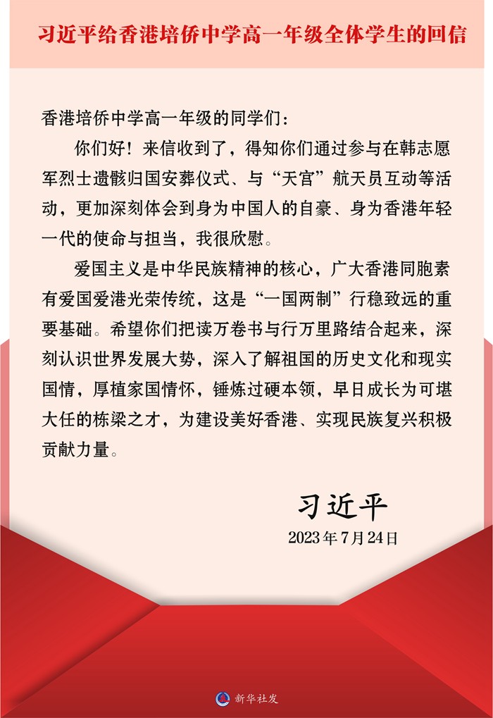 【來論】中央對港滿有期待、對港青滿滿關愛 從習近平主席回信香港中學生說起二百多字的一封信,承載著中央政府對香港青年的關愛;二百多字的一封信,每一個字都代表著中央政府對香港青年的期盼。這封信,說長不長,但絕對份量十足,蓋因這封充滿著愛和關懷、寄給香港培僑中學高一年級同學的信,來自一直關心香港未來和福祉、關心香港青年未來和發展的國家主席習近平。 人民對國家有多自豪,很多時都來自國家對人民有多關心。習近平主席今次回信,正好讓我們的青年真切的感受到,國家對他們有多重視;由愛國主義說起,再向香港青年闡述愛國就是中華民族精神的核心,再到清楚說明要“一國兩制”行穩致遠,愛國精神就不可或缺。聊聊數句,就將國家對青年的期望清楚說明,習近平主席對香港青年的企盼,已經躍然紙上。