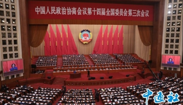 【同期】兩會進行時,中通在現場。觀眾朋友們大家好,我是香港中通社,香港新聞網記者晉欣。隨著首場政協新聞發布會的召開,中國正式進入“兩會時間”。昨天下午,全國政協第十四屆一次會議,在我身後的北京人民大會堂順利開幕,全國政協主席汪洋作政協常委會工作報告。今天下午三點,各民主黨派中央和全國工商聯的主席將審議這份工作報告和提案工作情況的報告,并回答現場記者的提問。那讓我們一起進去看看現場的情況。