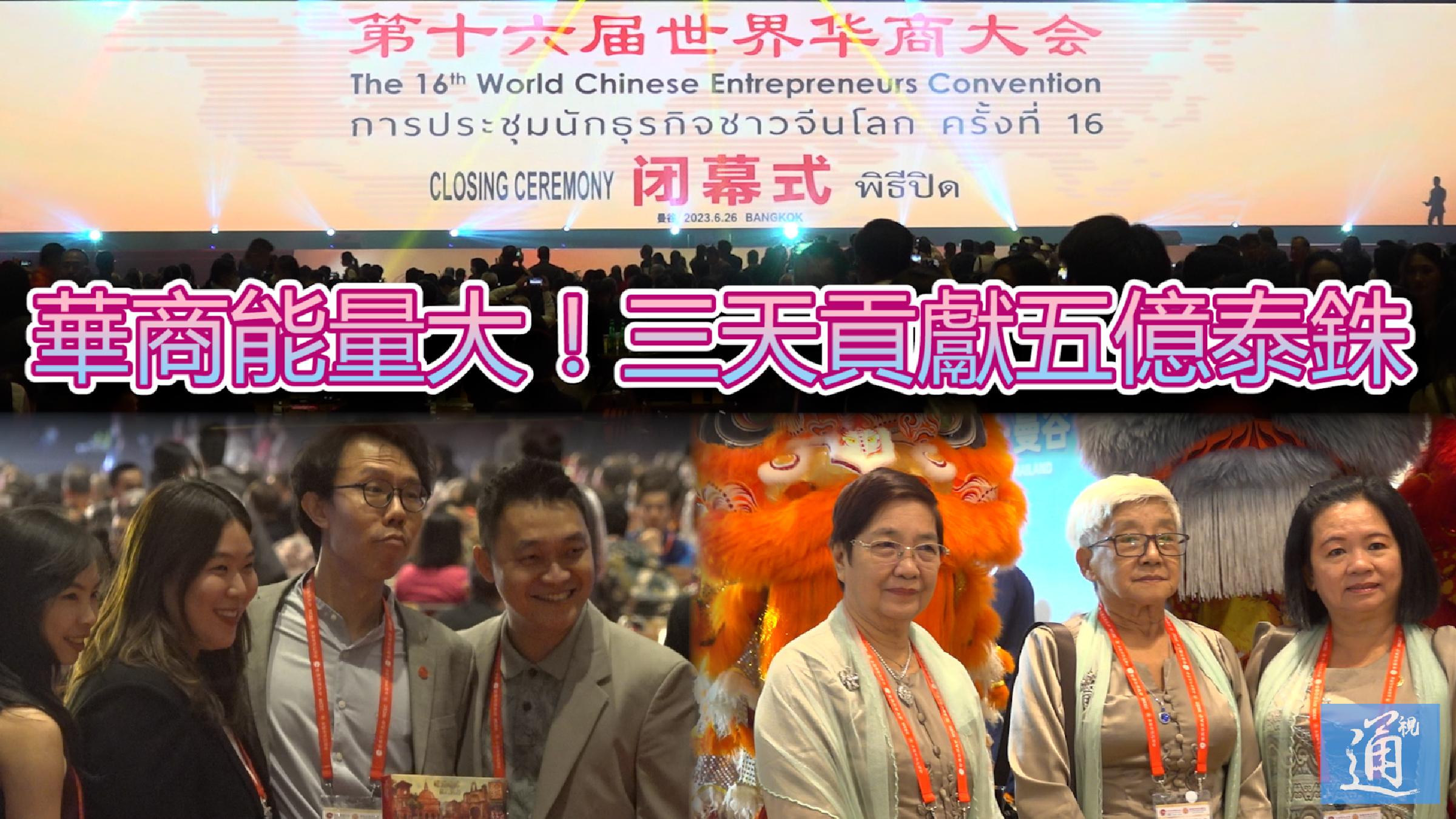 三天增五億!這屆華商為了“搶單”太拼了! 【解說】第十六屆世界華商大會6月26日在泰國曼谷閉幕。今次大會持續三天,吸引了來自全球50多個國家和地區的4500多位華商參與,超過30家機構和企業簽署了50多項合作協議。大會為曼谷帶來了超過五億泰銖的經濟收入,同時也刺激了泰國旅遊業的發展,產值達到近六億泰銖。