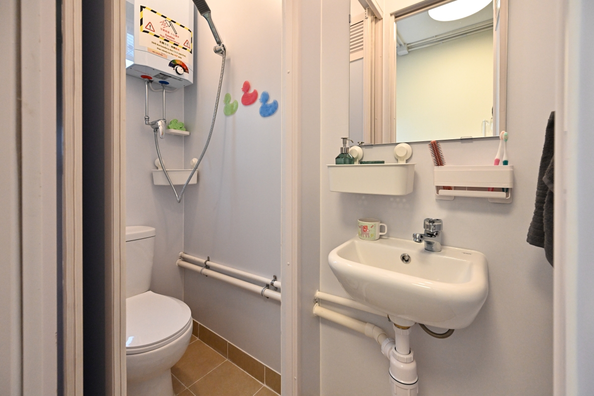 “簡約公屋”示範單位內部情況 另外,傳媒亦參觀了啟德世運道的“簡約公屋”用地。該用地預計可提供超過10,000個“簡約公屋”單位。“簡約公屋”示範單位設於啟德社區隔離設施內,模擬一個4至5人單位,設有獨立洗手間、淋浴間和開放式煮食空間,配備電熱水爐和抽氣扇等基本設備。“簡約公屋”將提供不同大小單位,室內樓面面積介乎約13至31平方米,包括可供1至2人入住的細單位、3至4人及4至5人居住的大單位。