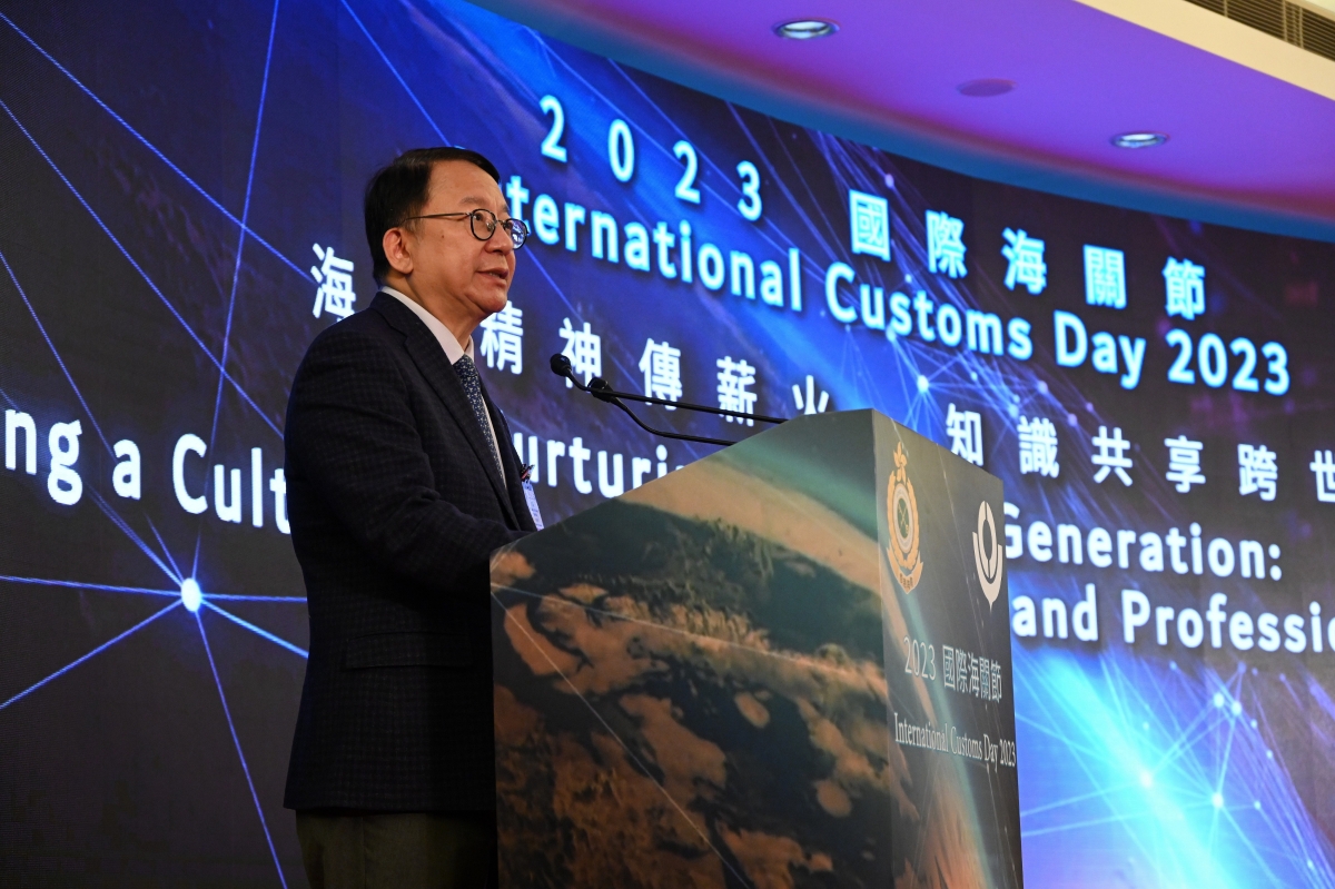 香港海關舉行2023年“國際海關節”慶祝典禮 今年,世界海關組織將“國際海關節”的主題定為“海關精神傳薪火,知識共享跨世代”,強調海關作為培育社會棟樑、推動知識傳承的重要角色。 在慶祝典禮上,陳國基讚揚香港海關盡忠職守,竭力打擊違法活動,維護國家安全,促進本港經貿發展,並在推動香港與內地以至世界各地暢通往來方面擔當重要角色。此外,香港海關一直為本地青年舉辦多元教育活動,有助推動他們成長成才。