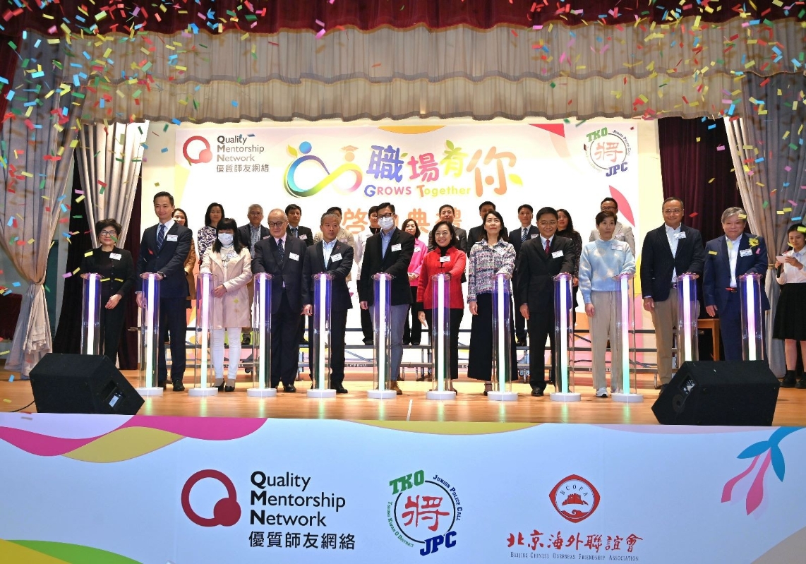 香港新聞網2月6日電 將軍澳區少年警訊與香港優質師友網絡首次合辦的生涯規劃項目“GROWS Together職場有你”近日舉行啟動禮。項目為本地高中生提供職場體驗,並讓學生有機會到訪內地及海外城市,在當地實習,拓闊眼界。保安局局長鄧炳強及民政及青年事務局局長麥美娟在啟動禮致辭時對參與計劃的學生予以鼓勵。 將軍澳警區指揮官麥文禹、將軍澳區少年警訊名譽會長會主席吳來盛、香港優質師友網絡主席楊莉珊、副主席鄭慕智及約200名義務導師和學生出席啟動禮,合作單位亦藉此向來賓分享計劃的理念及內容。