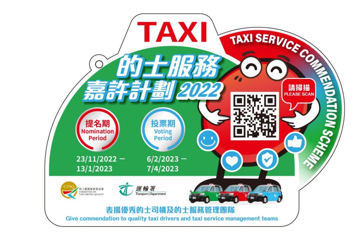 香港新聞網2月6日電 運輸署今日(2月6日)表示,的士服務嘉許計劃2022現正接受公眾投票,市民可透過網站www.ctsq.org.hk/voting或掃描的士車廂內宣傳單張(見下圖)上的二維碼,投票選出本年度“優秀的士司機”及“好人好事”獎的得獎司機。投票4月7日截止。