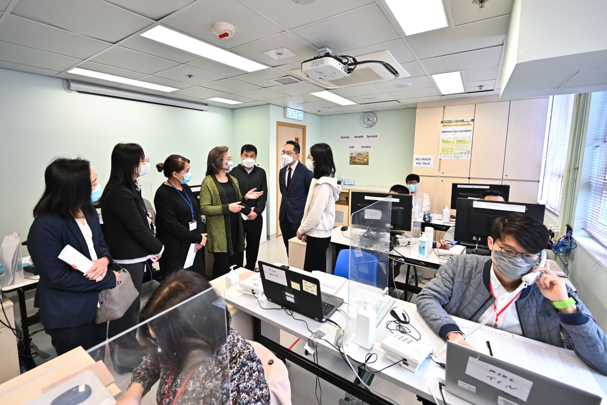香港新聞網2月8日電 香港特區政府公務員事務局局長楊何蓓茵今日(2月8日)到衞生署設於鄧志昂母嬰健康院的熱線中心視察,了解該署人員致電聯絡使用母嬰健康院服務的幼童的家長,主動向他們講解接種新冠疫苗的重要性,並為他們安排預約到母嬰健康院接種疫苗。