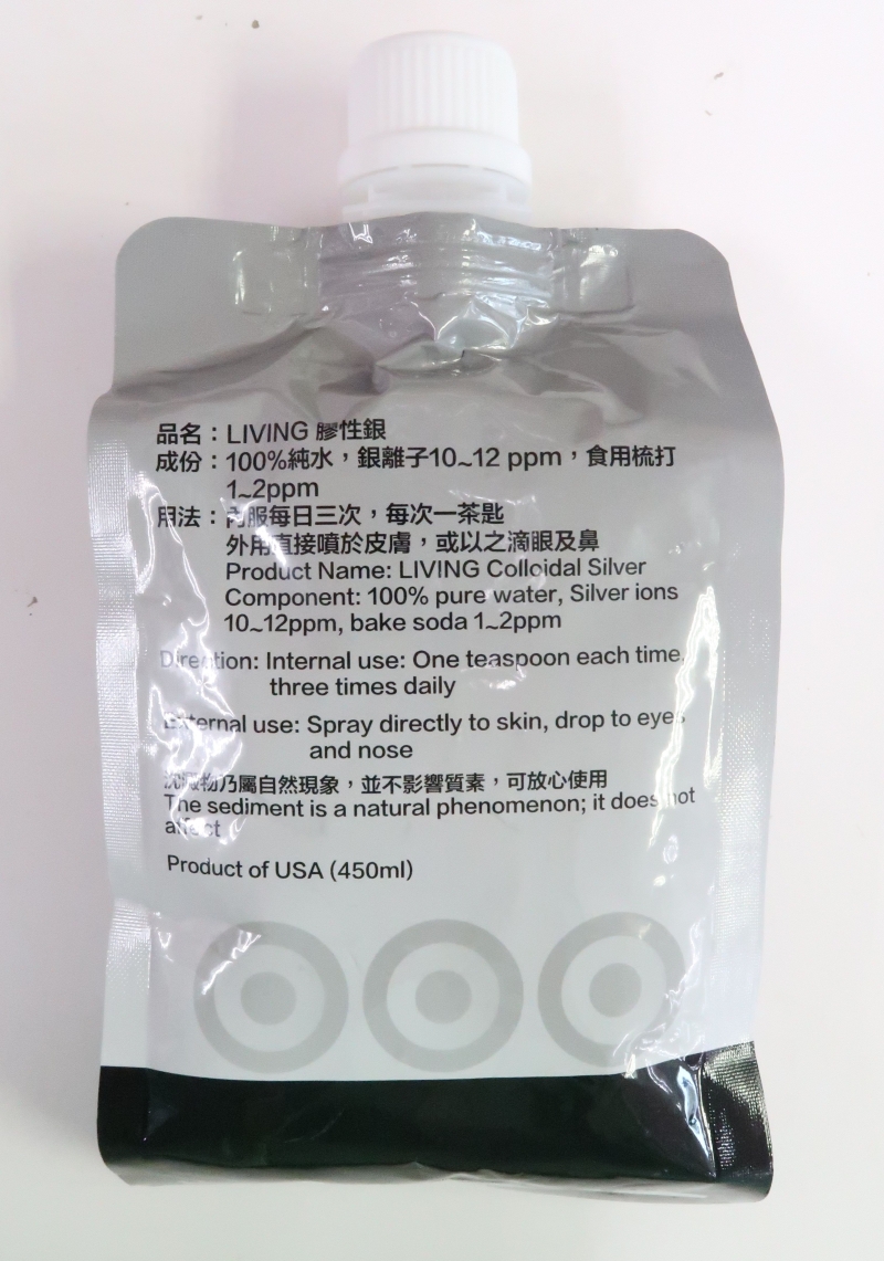 該款涉及銀中毒個案的“膠質銀”產品 初步調查顯示,病人由一間位於太子的供應商購入此含有“膠質銀”的產品,並已使用該產品逾十年,包括內服及外用於眼角和手指。她的血液樣本被發現銀含量高於參考水平,醫管局的化驗結果亦顯示此產品含有銀。醫管局對病人的診斷為銀中毒及銀質沉着症。 衞生署接獲通報後已立即展開流行病學調查,調查仍在進行中。 銀在人體沒有已知功效,亦非人體所需的營養素。長期攝取“膠質銀”可引致銀中毒,令皮膚永久性地變成灰藍色。身體亦可能出現其他病徵,包括貧血症、骨髓細胞減少、肝功能異常和神經功能缺損。 香港現時沒有註冊藥劑製品的有效成分包含“膠質銀”。目前沒有科學實證支持非外用(內服)“膠質銀”以治療任何特定疾病或狀況。 由於服用含“膠質銀”的產品有潛在風險,內服“膠質銀”對身體是否有益處亦欠缺科學實證,因此市民不應服用含“膠質銀”的產品。 (完) 【編輯:黃璇】