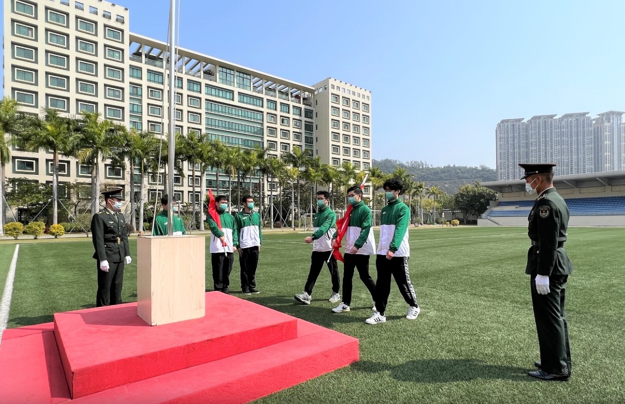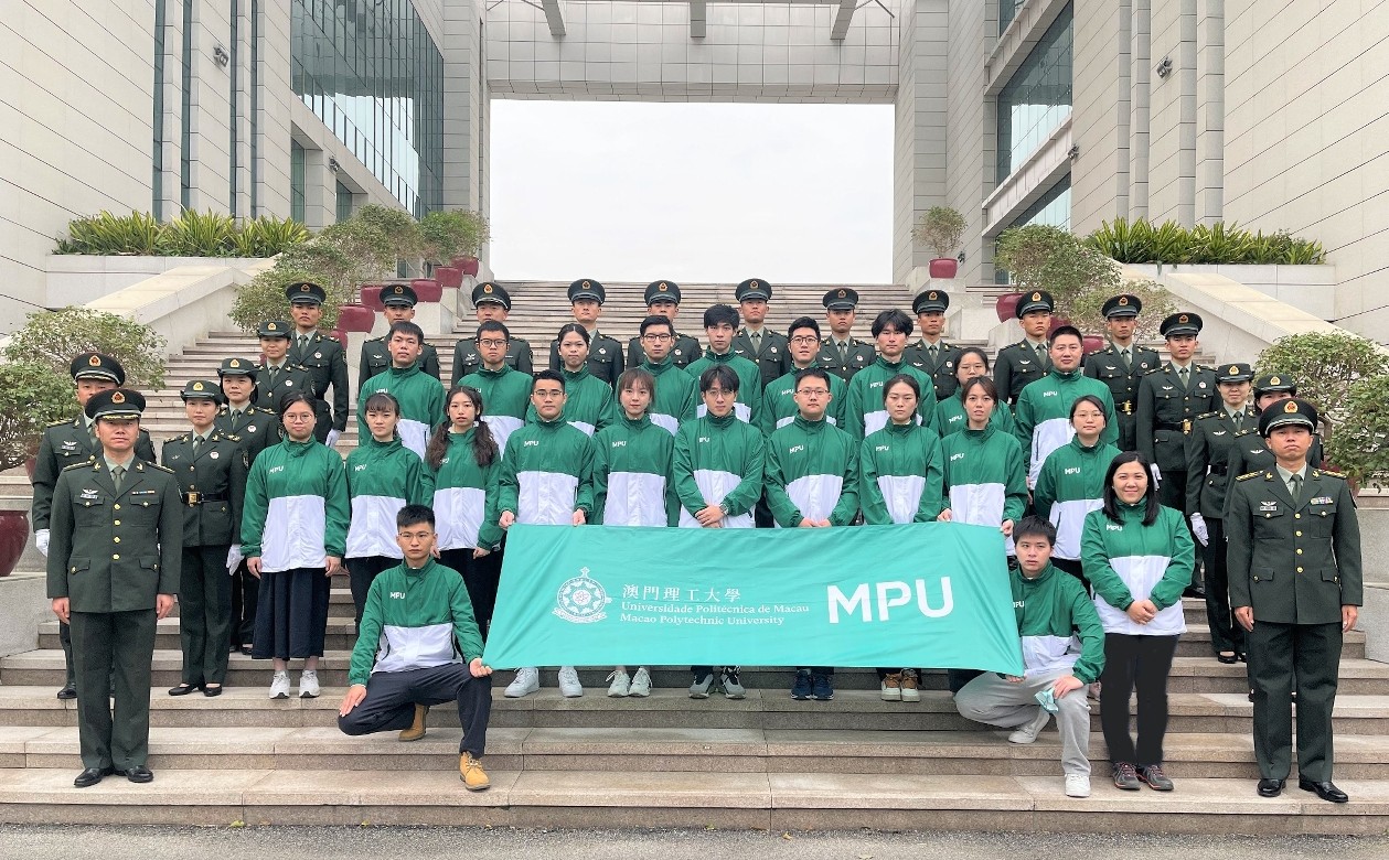澳門理工大學國旗儀仗隊赴中國人民解放軍駐澳門部隊接受訓練 是次培訓首先安排參觀駐澳部隊軍史館,讓國旗儀仗隊成員近距離瞭解駐澳部隊依法駐軍及維護“一國兩制”下對澳門特區繁榮穩定的貢獻。接著,國旗儀仗隊進行中華人民共和國國旗、國徽和國歌的相關法律法規教育,以及參加專業的升國旗儀式培訓。訓練內容包括觀摩示範、步操隊列及升旗動作訓練等。參與培訓的國旗儀仗隊成員學生皆認真專注、全程投入,並表示他們不僅學習具體的動作技巧,更重要的是領悟箇中意義,把自身的發展與國家富強、民族興盛、澳門繁榮緊密結合起來,為國家和澳門的發展協同奮進,使愛國愛澳傳統薪火相傳。