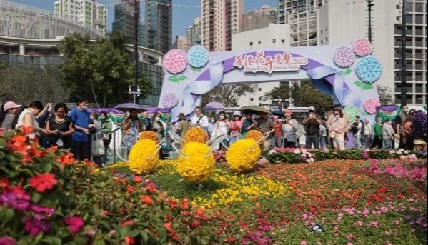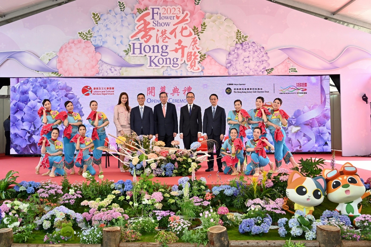 香港新聞網3月10日電 每年一度的賞花盛事香港花卉展覽(花展)今日(3月10日)在維多利亞公園(維園)開幕,展出約40萬株花卉,包括約四萬株主題花繡球花。 主持開幕典禮的嘉賓包括立法會主席梁君彥、文化體育及旅遊局局長楊潤雄、香港賽馬會慈善及社區事務執行總監梁卓偉、2022香港小姐冠軍林鈺洧,以及康樂及文化事務署(康文署)署長劉明光。
