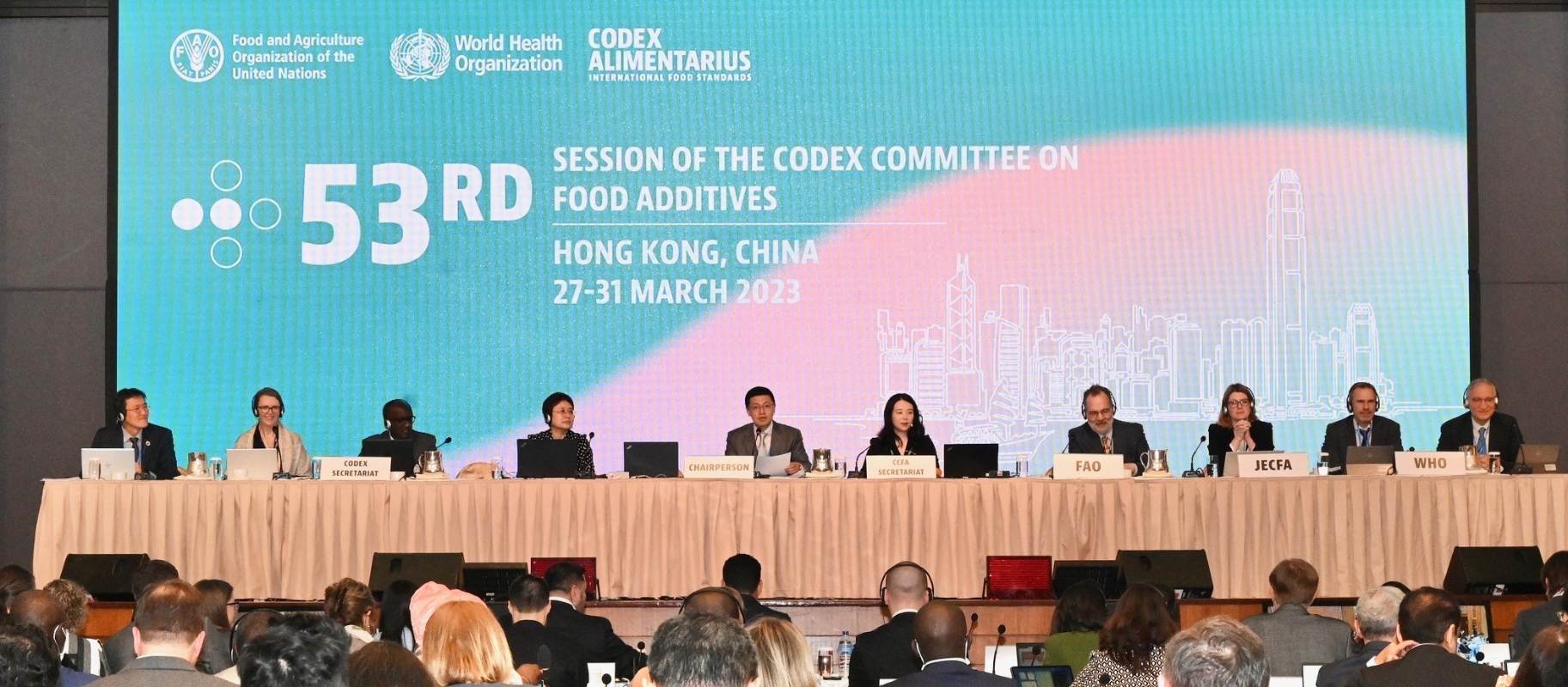 第53屆食品添加劑法典委員會會議在香港開幕。 會議由今日至3月31日在富豪機場酒店舉行,國家衞生健康委員會副主任雷海潮和香港特別行政區(特區)環境及生態局局長謝展寰擔任主禮嘉賓,並分別在今日會議的開幕儀式上致辭。