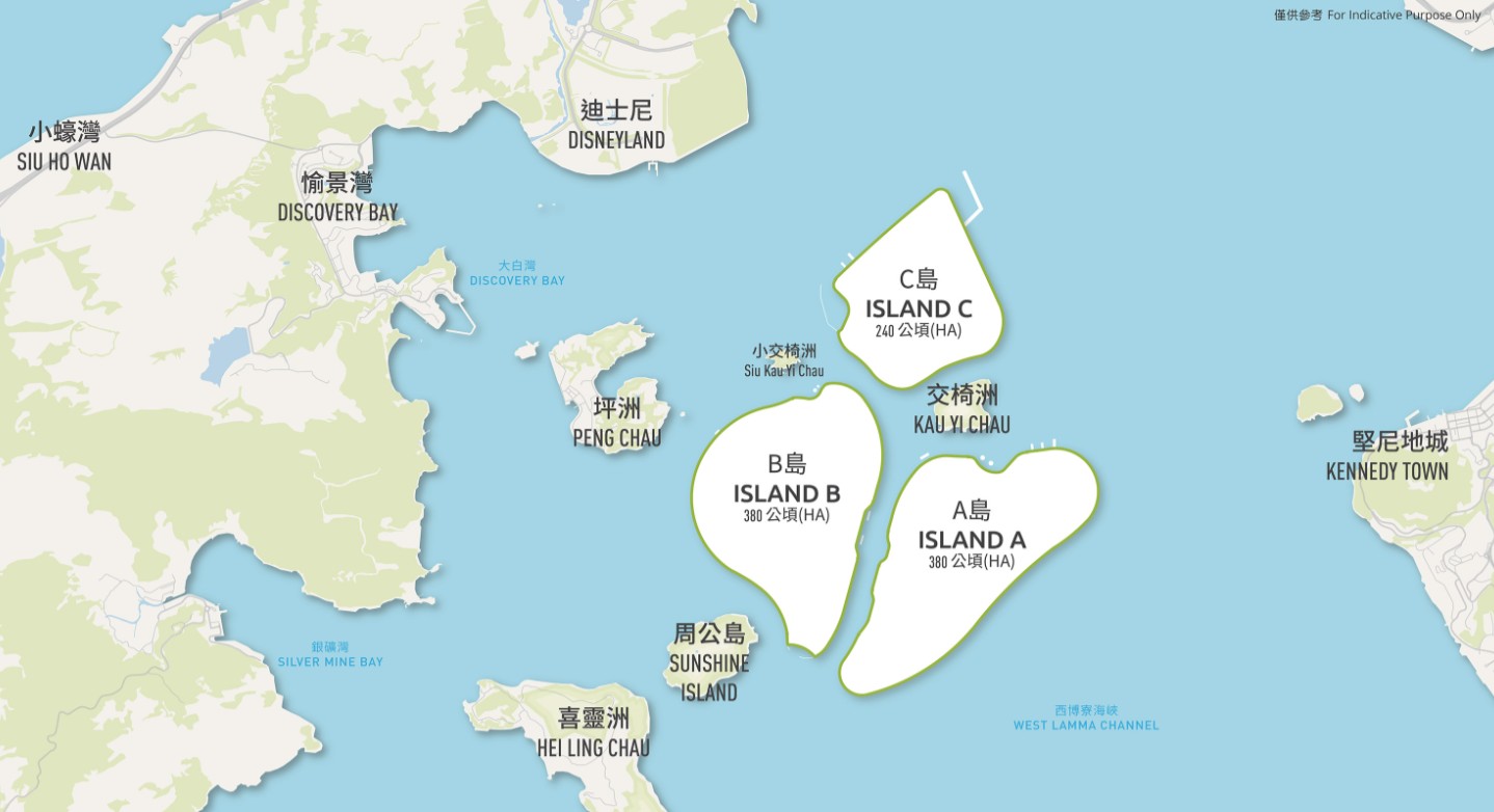 交椅洲人工島由三個島嶼組成,稱為A、B、C島。(圖片:發展局) 李家超舉例說,在土地供應方面,香港人均居住面積的中位數約只有16平方米,較新加坡低1/3,亦較上海低大約1/3,更較深圳低40%,“香港是否永遠都停留在這個階段,不將我們的實際居住環境提升?為什麼我們每個人的居住面積不可以大一些?為什麼我們只是住在現時的居住面積,不能比得上其他地方或城市,甚至更好呢?” 如何‘跑贏’其他人?當然很多理由,但其中一個就是我們有沒有足夠土地發展經濟、發展商業。商舖的租金、寫字樓的租金是否有足夠競爭力,令我們能‘打贏’對方。我希望我們的眼光應該愈看愈遠,愈看愈大,我們的眼光不應該愈看愈窄或愈看愈小。” “我們說提供土地,無論‘北部都會區’或交椅洲人工島,所提供的土地不是說5年、10年,而是長遠,涉及超過30年、50年,將來這麼多年所帶給香港的效益和競爭力。”李家超進一步解釋,香港的填海比例大約佔土地總面積的7%,而新加坡就有逾20%的土地是由填海得來,所以大家不應只是看目前,而是要看長遠。“我們考慮的是跟全世界競爭,亦不應該只是考慮未來的3年、5年,我們考慮的是將來。”李家超表示,發展局在這方面正在進行諮詢工作,並會對每一個意見作充分考慮。 (完) 【編輯:黃璇】