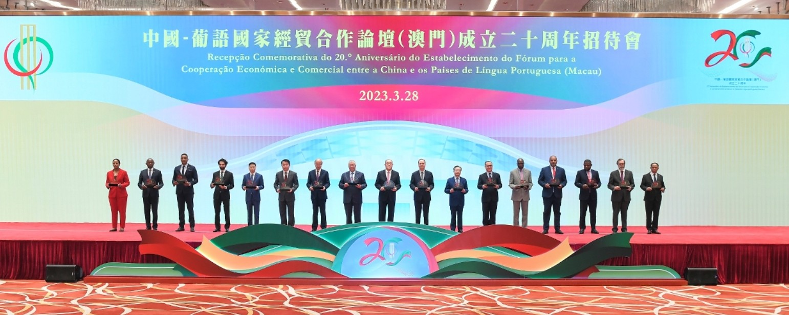 主禮嘉賓主持中葡論壇成立二十周年系列活動啓動儀式。 中葡論壇常設秘書處秘書長季先峥發表歡迎辭。他表示,20年來,在中國中央政府的大力支持下,在澳門特區政府的積極配合下,在葡語國家的共同參與和努力下,中葡論壇機制不斷完善,建設成效不斷彰顯,為促進中國和葡語國家各領域交流合作,為提升葡語國家在華影響,為澳門中葡商貿合作服務平台建設發揮了不可替代的作用。他感謝所有為論壇創立和發展做出貢獻的中國和葡語國家各界人士,並表示常設秘書處將緊緊圍繞部長級會議制定的行動綱領,繼續支持打造澳門中葡商貿合作服務平台,為促進中國與葡語各國人民相知相親作出新的貢獻。 澳門特區行政長官賀一誠致辭時表示,隨著澳門中葡平台功能建設的不斷完善,希望論壇能夠充分利用澳門的獨特優勢以及橫琴粵澳深度合作區建設的機遇,結合澳門當前“1+4”適度多元發展策略,讓澳門企業在促進內地與葡語國家經貿合作及澳門與葡語國家人員往來方面發揮更大作用,並實現共同發展。特區政府圍繞“一中心、一平台、一基地”的發展定位,用好中央支持澳門發展的各項政策措施;繼續全力支持中葡論壇常設秘書處的工作,進一步擴展中葡平台功能,助力中國和葡語國家經貿人文合作不斷深化。 中國商務部台港澳司副司長李曉輝表示,中葡論壇20年來先後舉辦五屆部長級會議和一屆部長級特別會議,合作領域由最初的7個發展到超過20個。中葡論壇已經覆蓋了世界上所有以葡語為官方語言的國家。中國與葡語國家的貿易額從2003年的110.3億美元增加至2022年2148.3億美元;中國與葡語國家人文交流豐富多彩,葡語國家共計超過1.3萬人次到中國內地和澳門參加研修培訓或留學教育。中方願與各葡語國家一道,加強合作、共謀發展、共創未來,推動中葡間各領域務實合作不斷邁上新台階。
